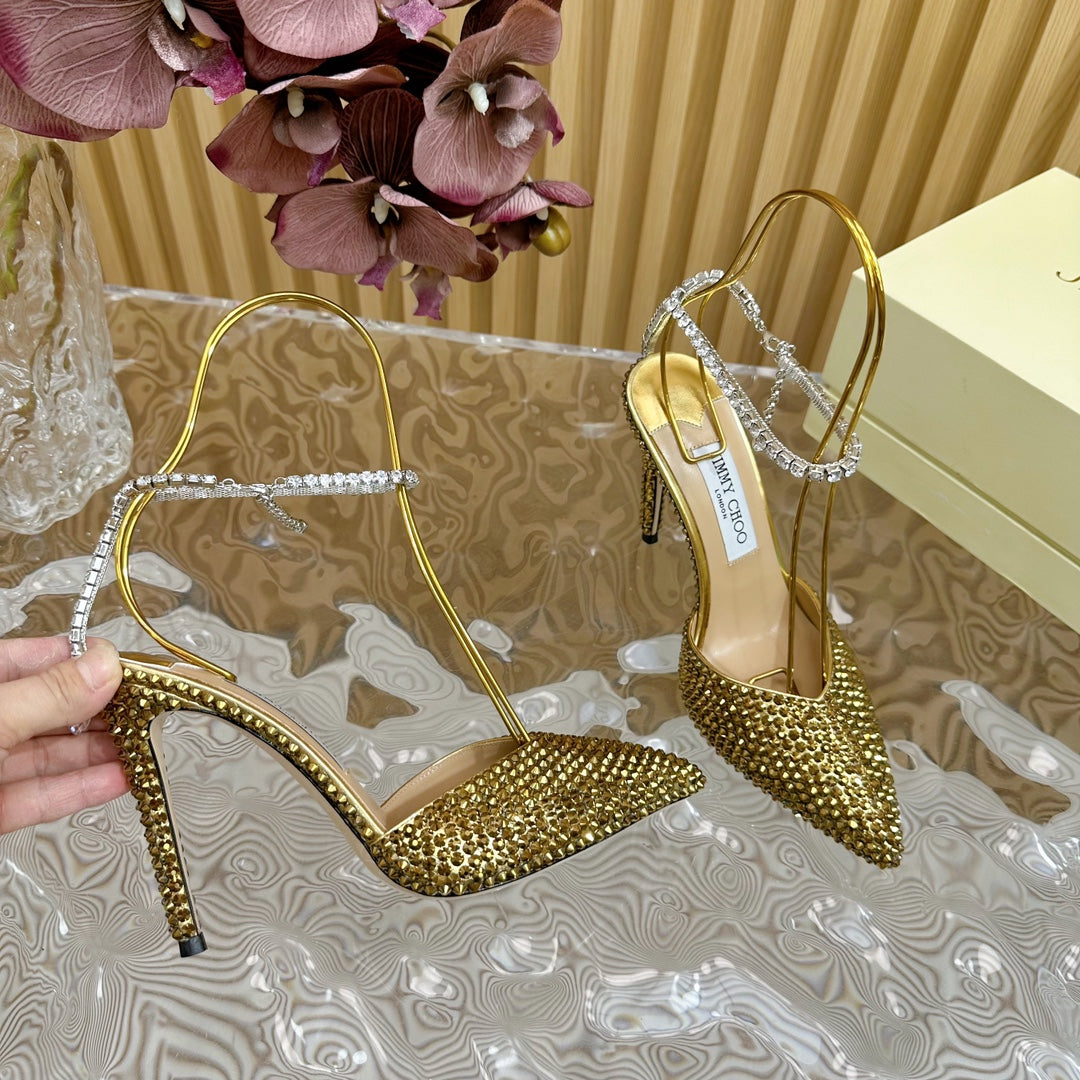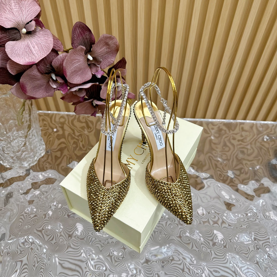 Jimmy Saeda 105 In Gold Pearl Studded Lambskin Pumps 581505