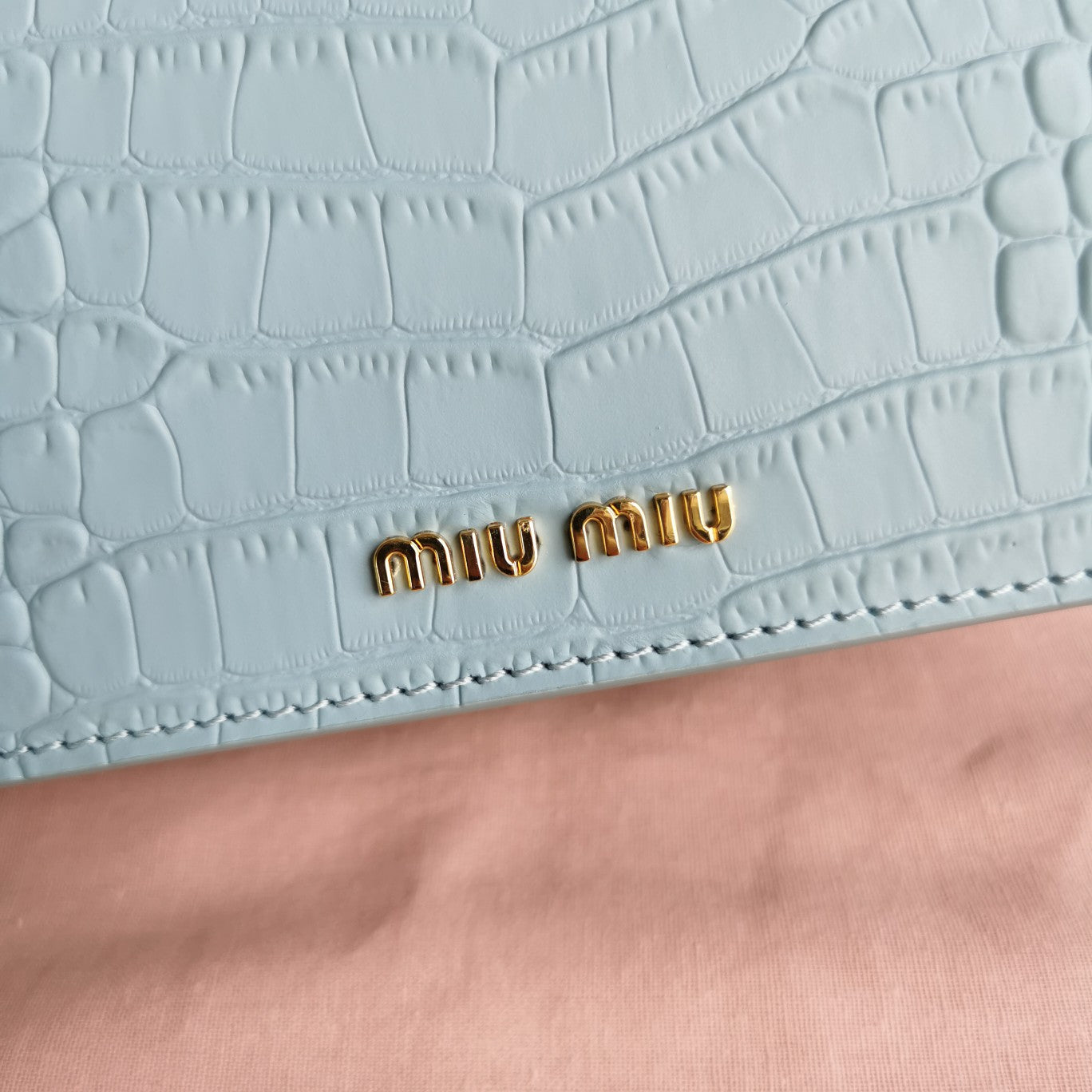 LADY 20 HANDBAG IN CROCODILE PATTERN BLUE MINT CALFSKIN