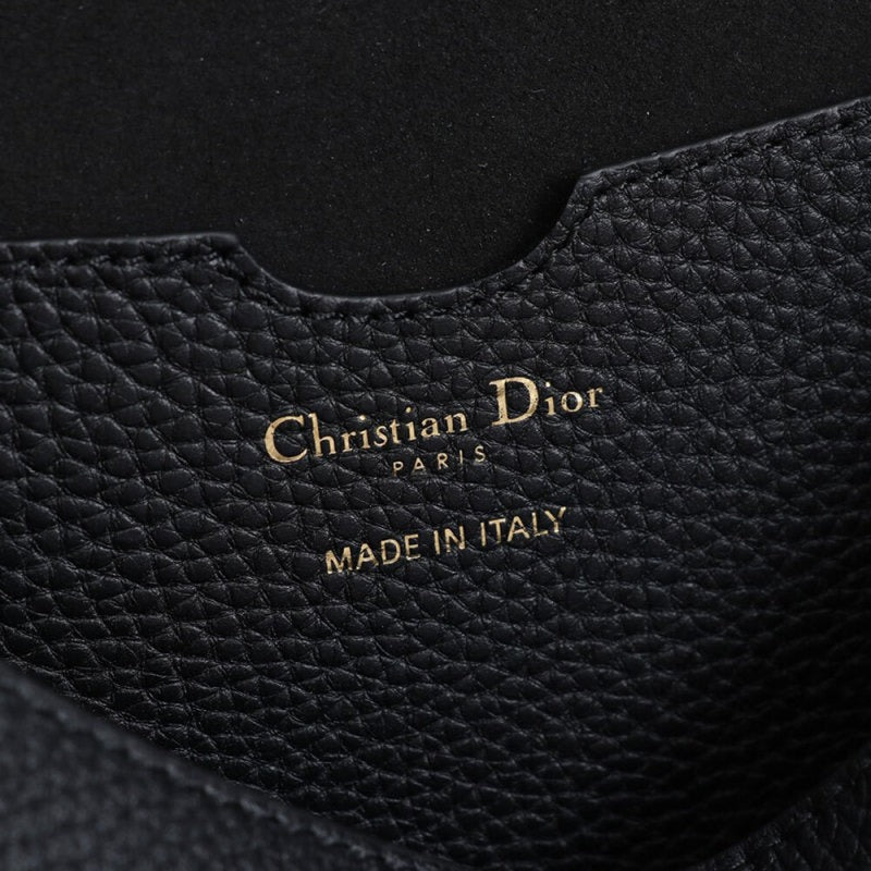 Black Grained Calfskin with Blue Dior Oblique Embroidered Shoulder Strap