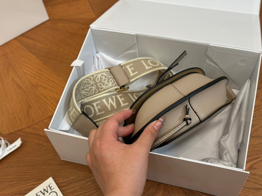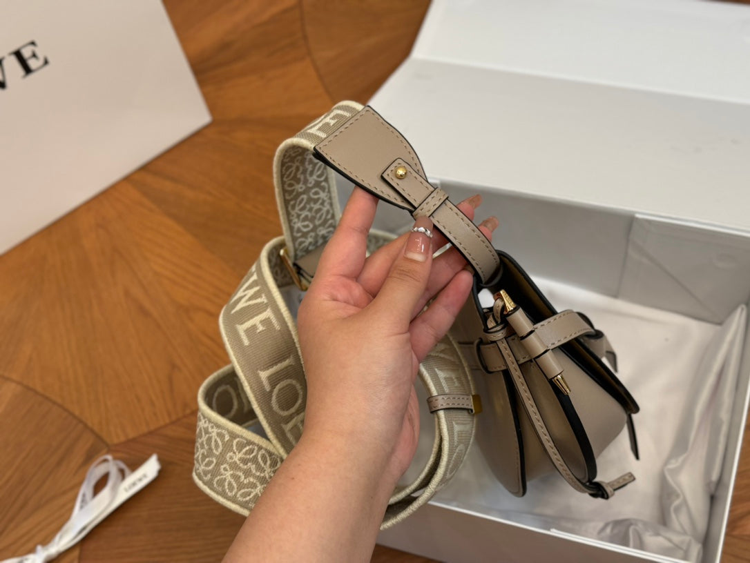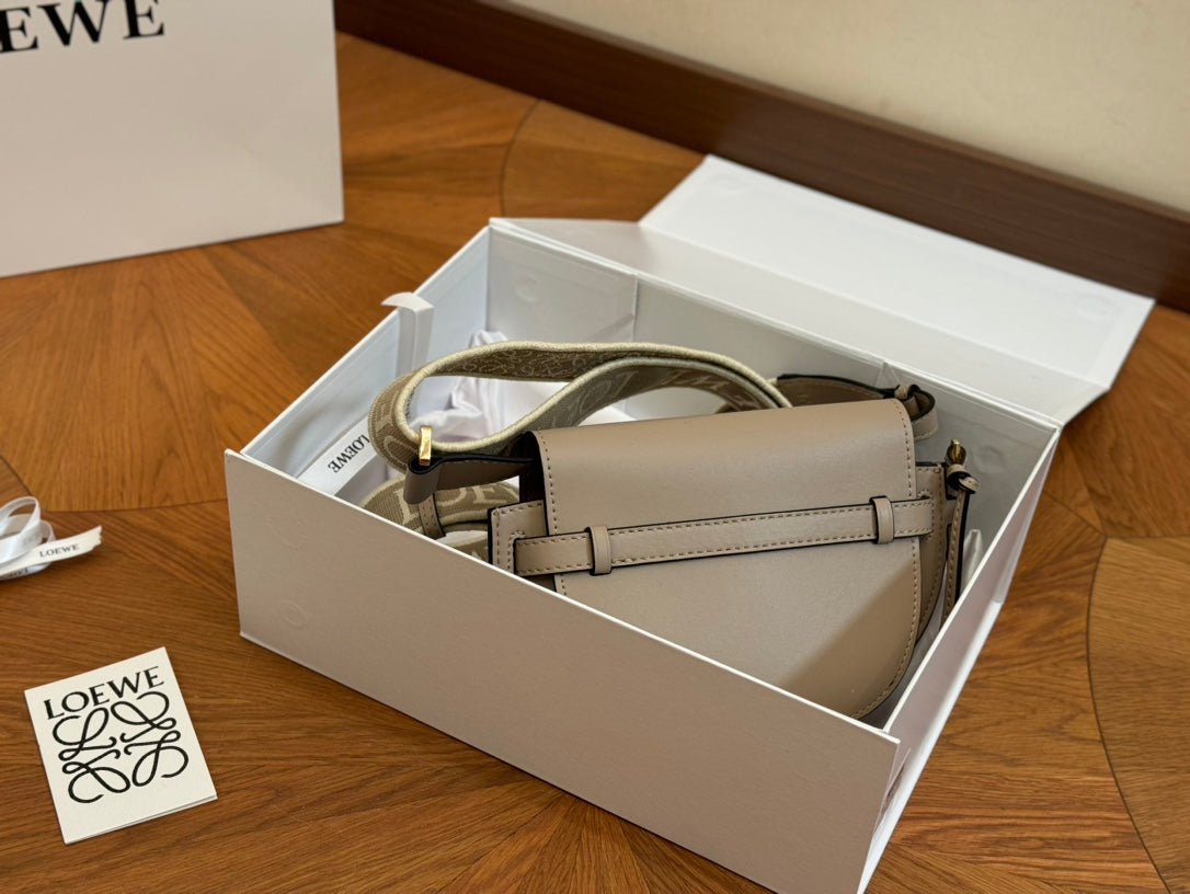 LOE SMALL 21 GATE DUAL BAG IN KHAKI BROWN SOFT CALFSKIN AND JACQUARD