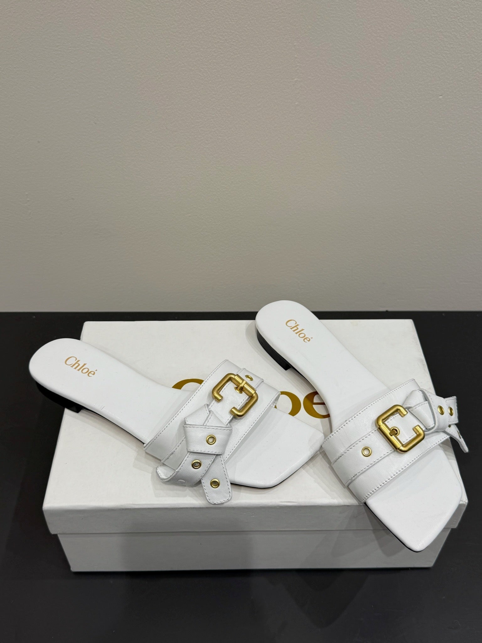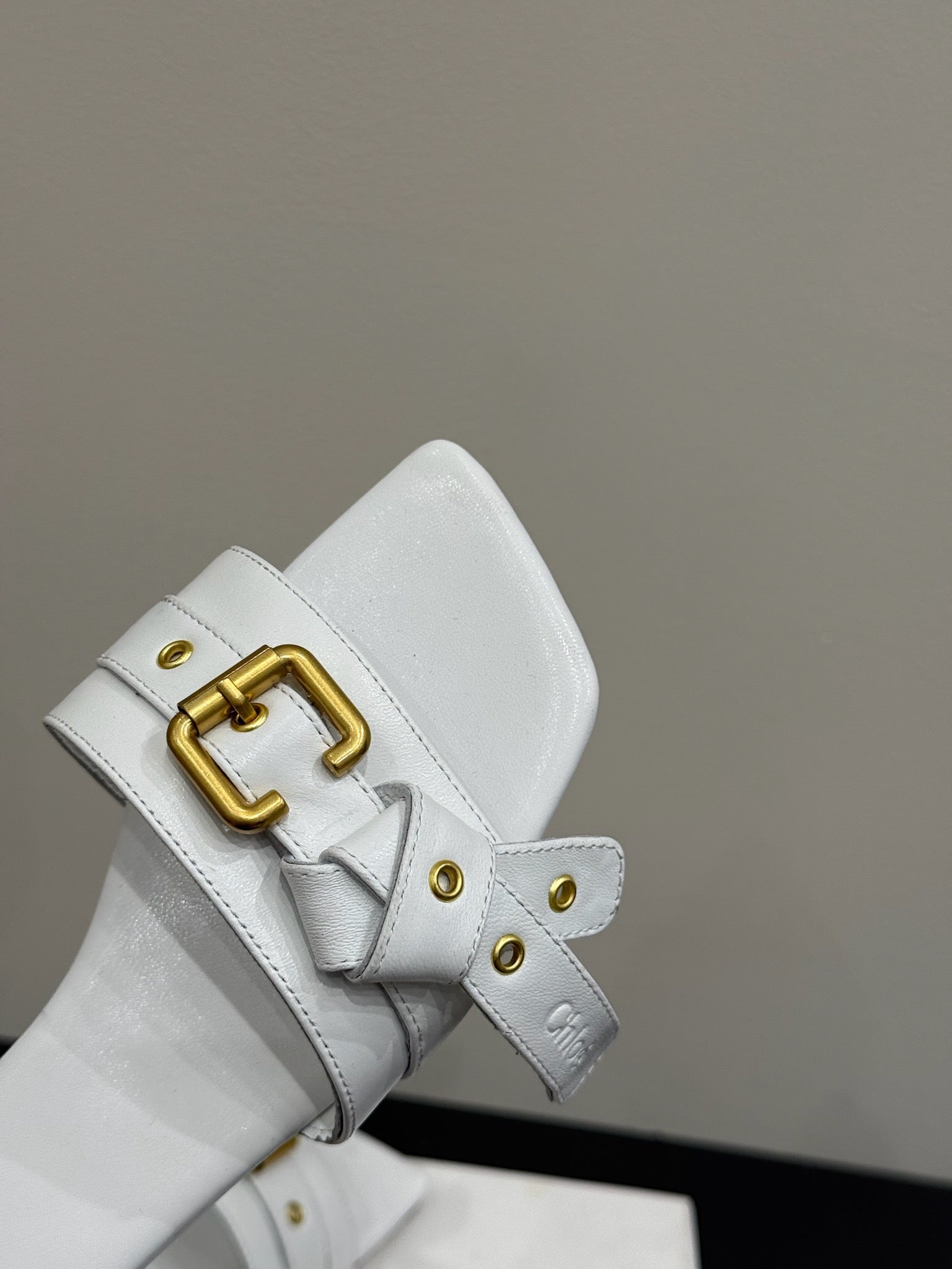 Loewe 25 Bow Metal Buckle Slide White Cowhide