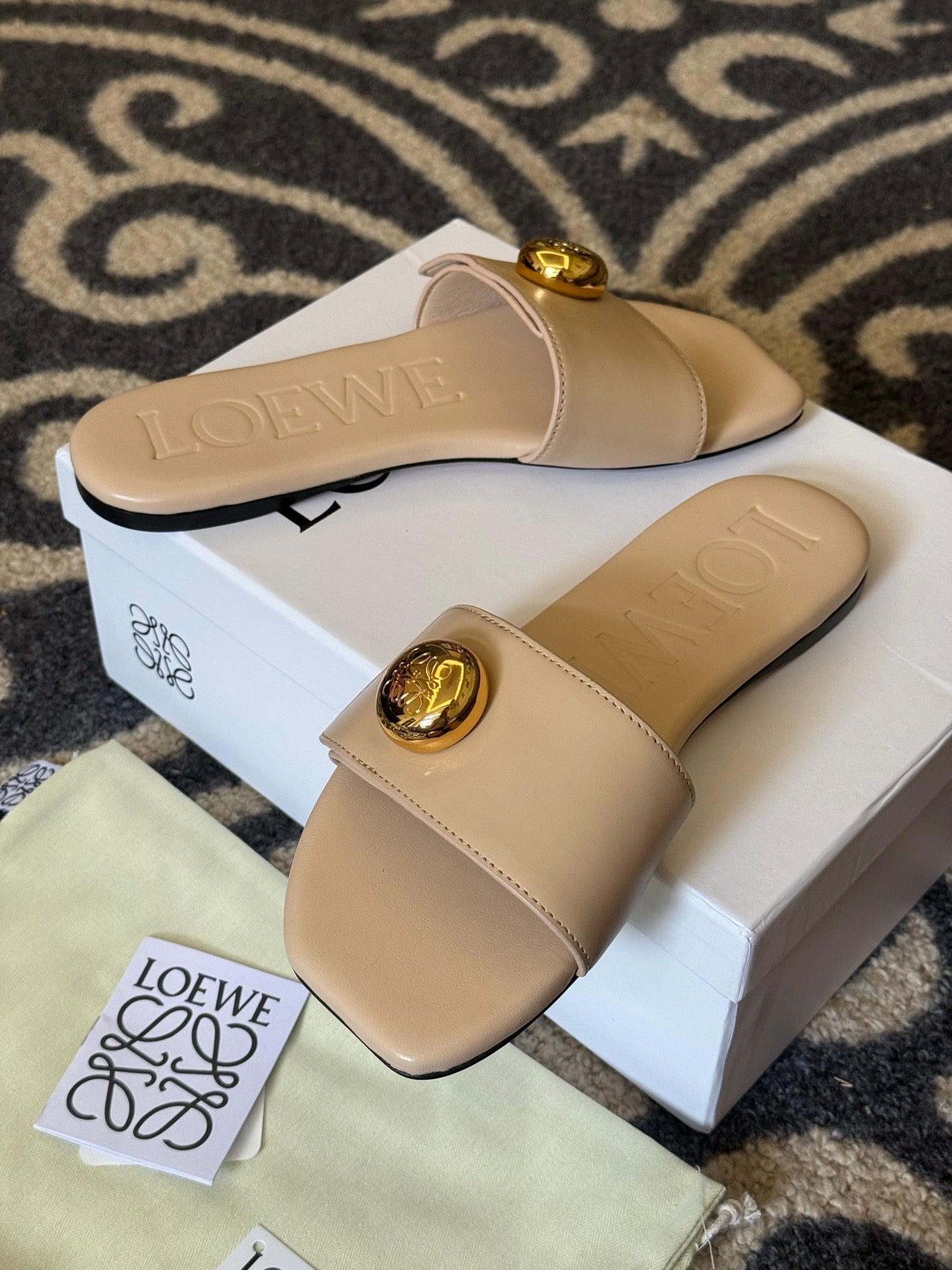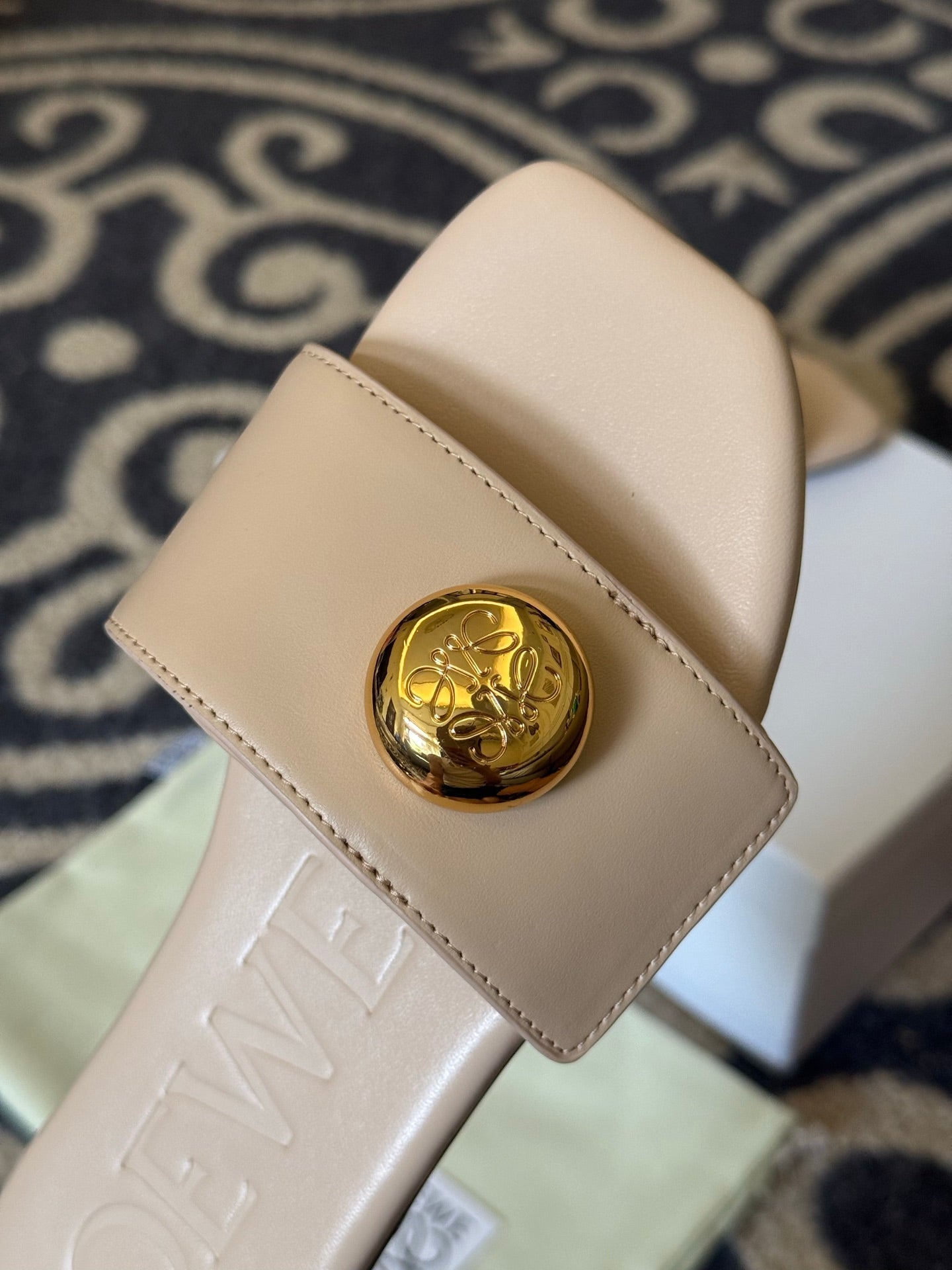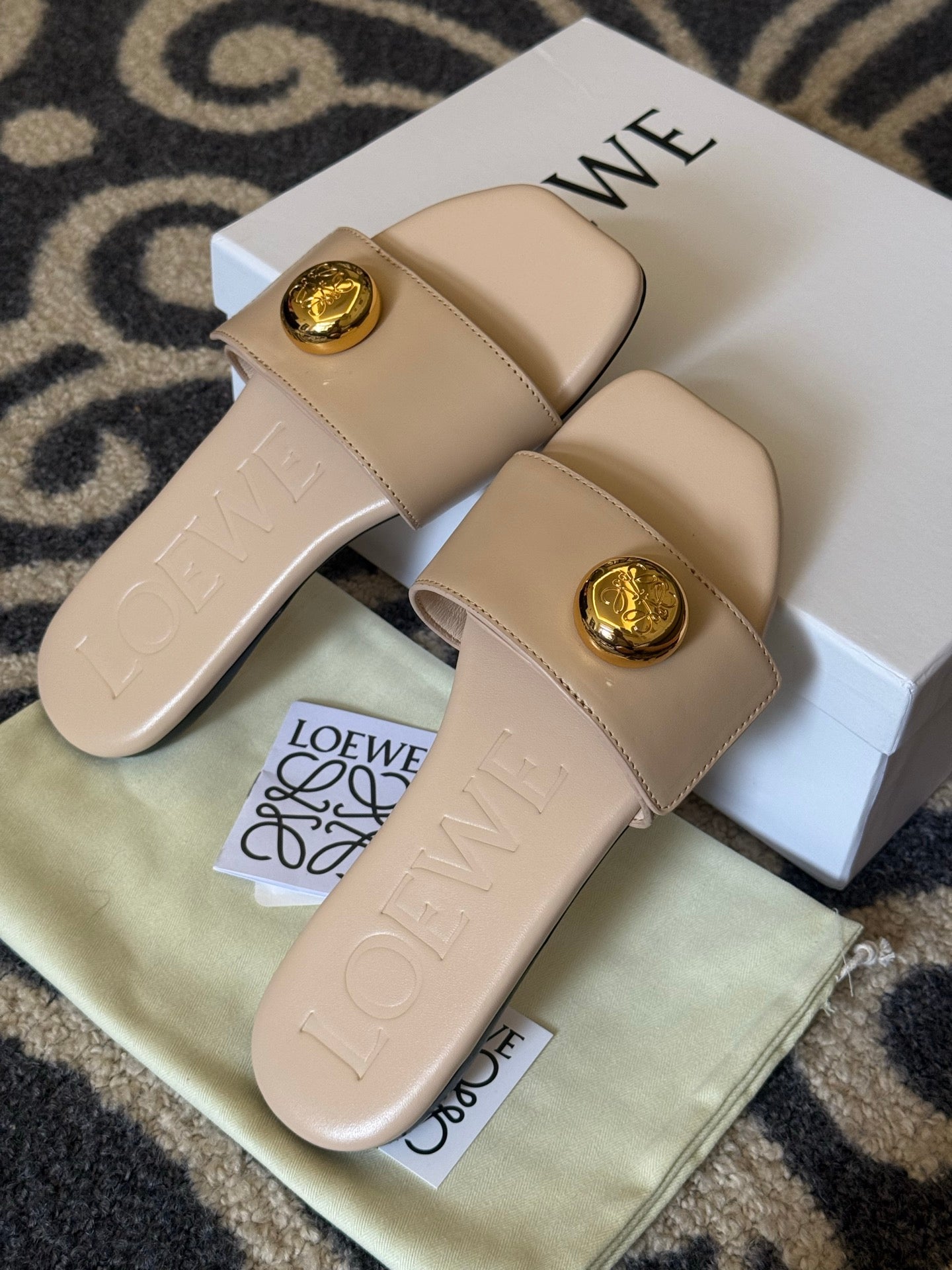 Loewe 25 Pebble Slide Beige Calfskin