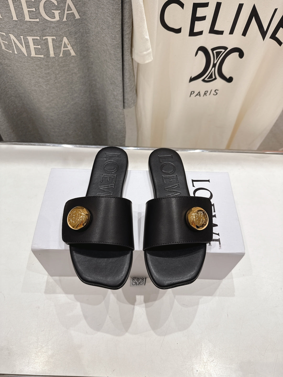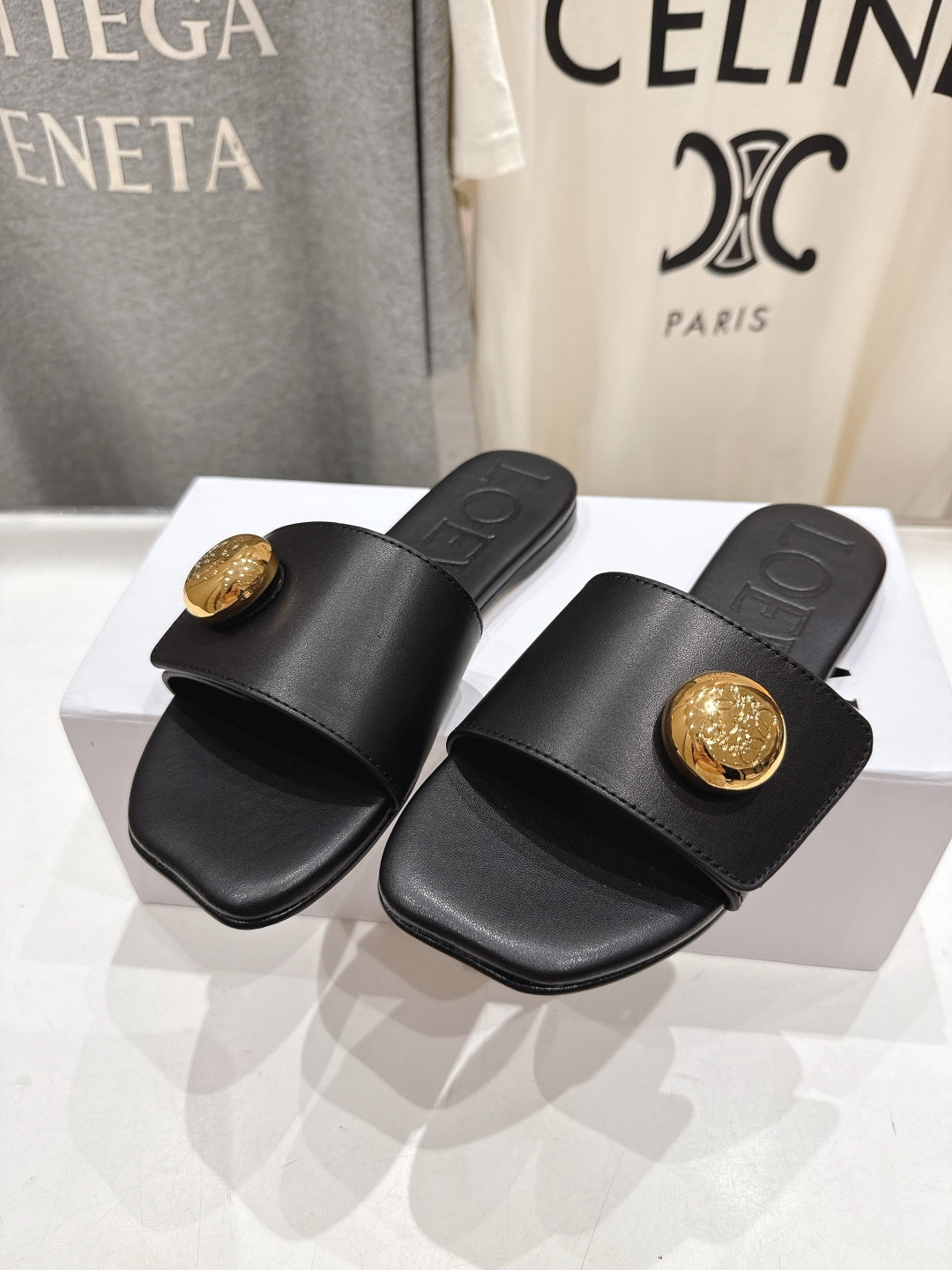 Loewe 25 Pebble Slide Black Calfskin 325329