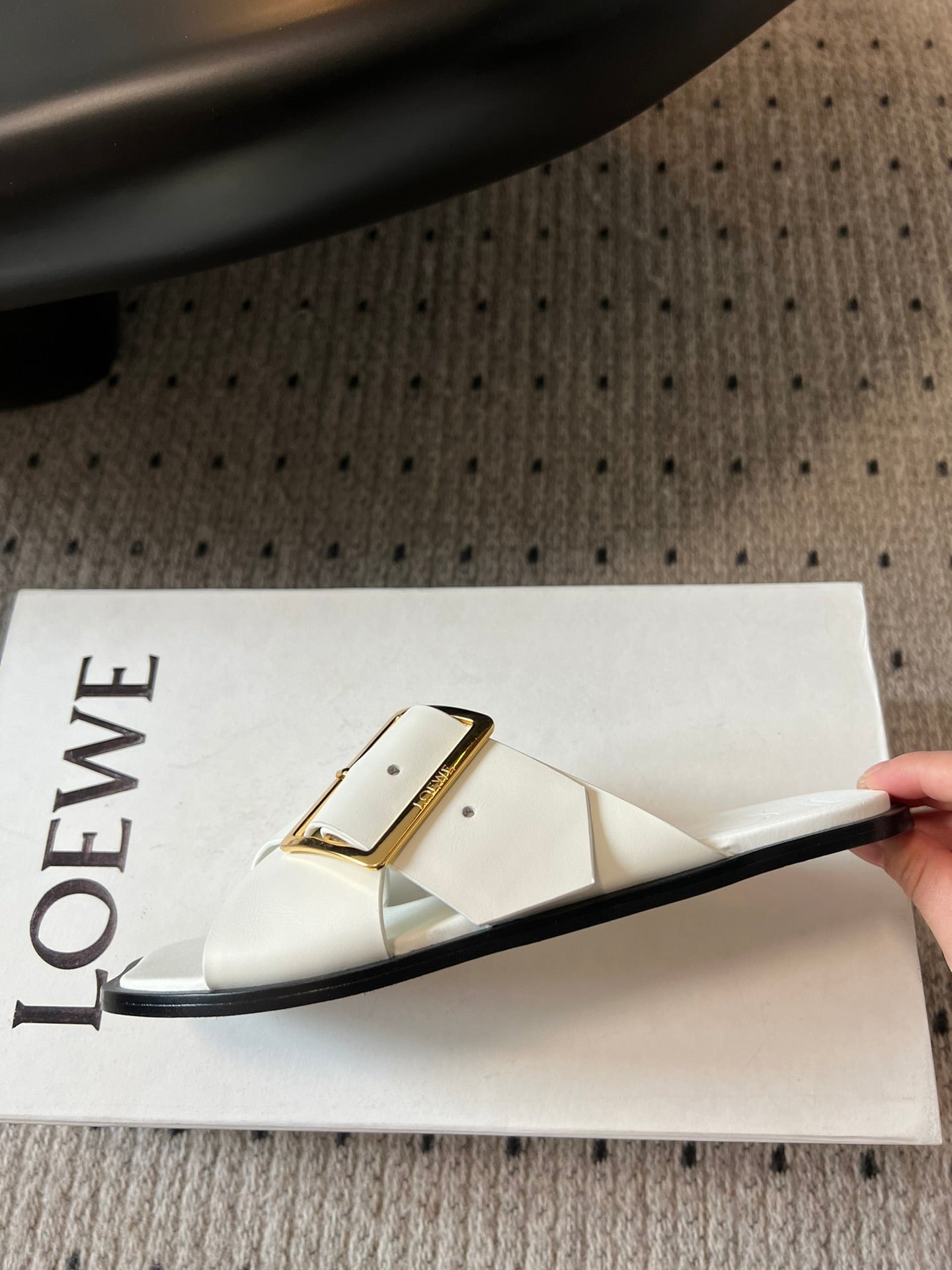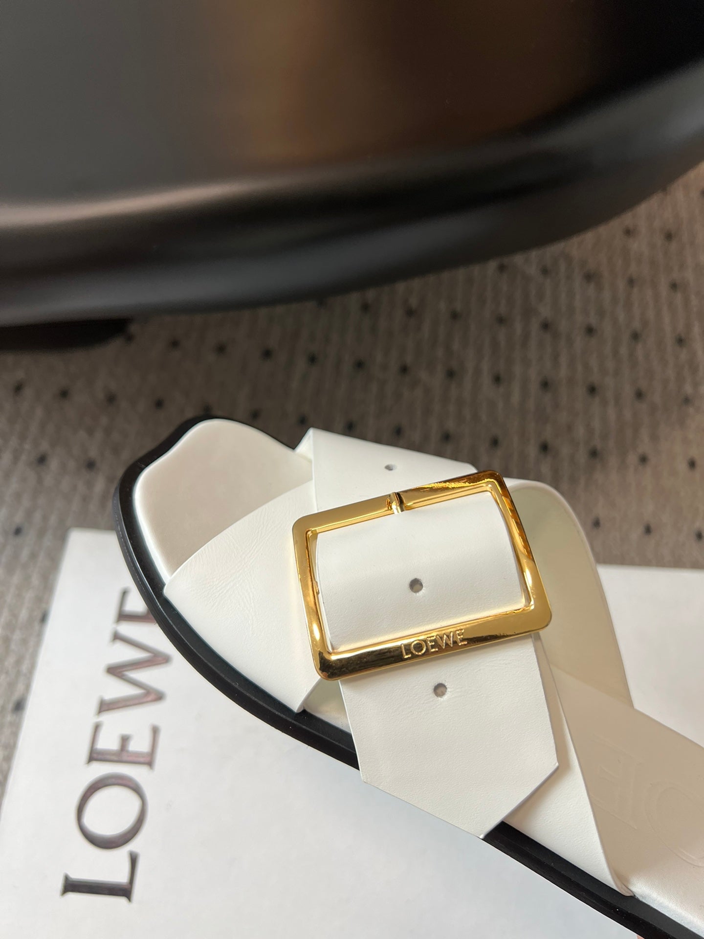 Loewe 25 Petal Belt Flat Sandals White Sheepskin 212777