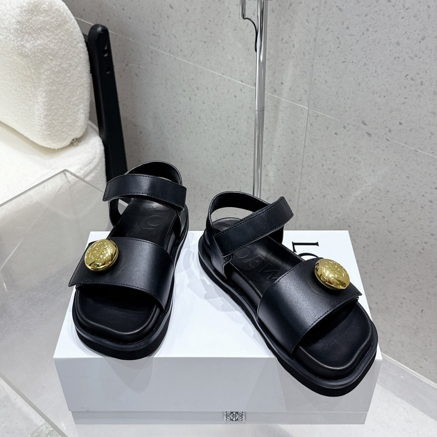 LOEWE 25ss sandals black gold sheepskin