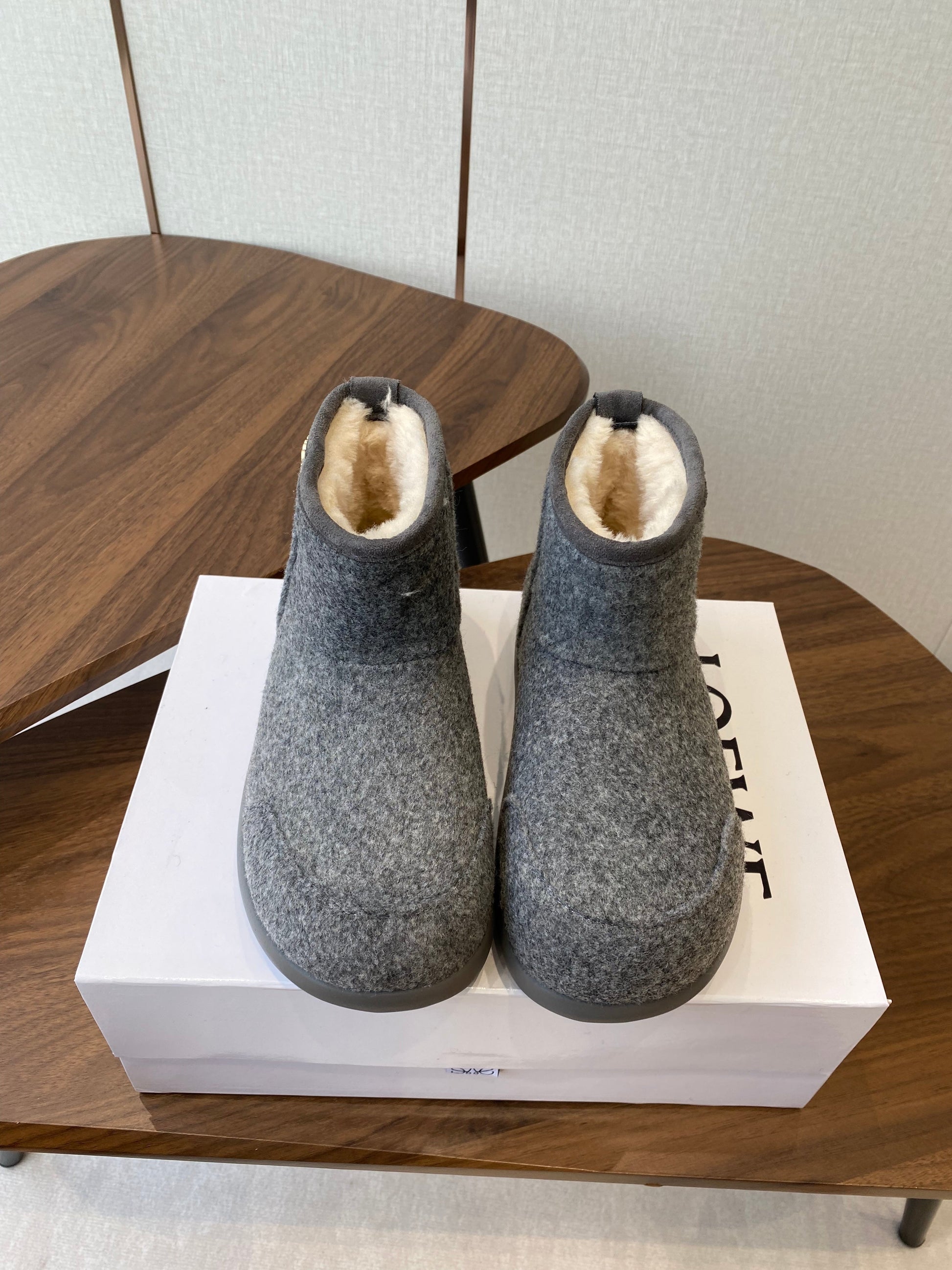 Loewe snow boots gray white suede wool 477799