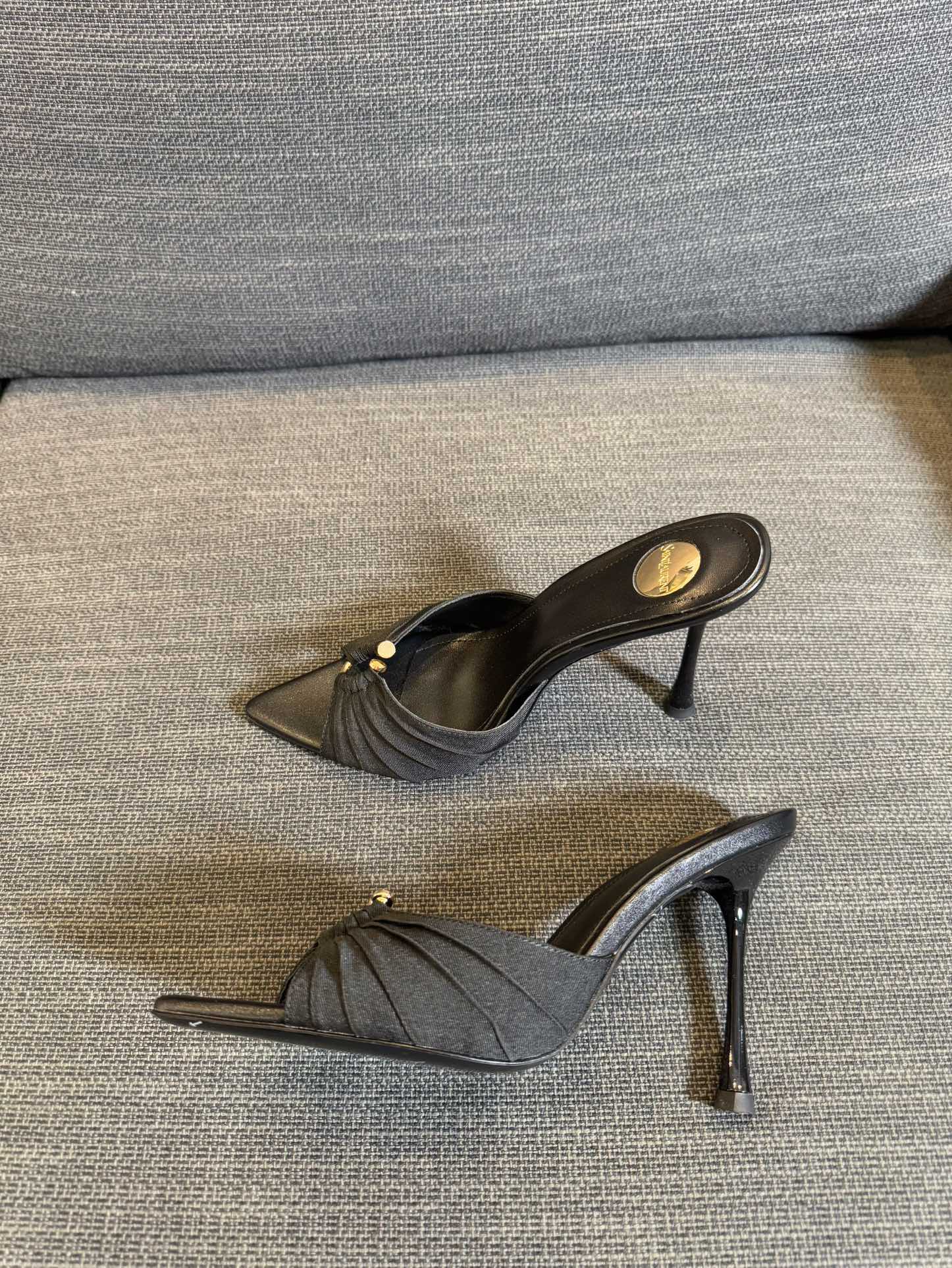 LOLA HIGH MULES IN BLACK SMOOTH LAMBSKIN AND DRAPED JERSEY