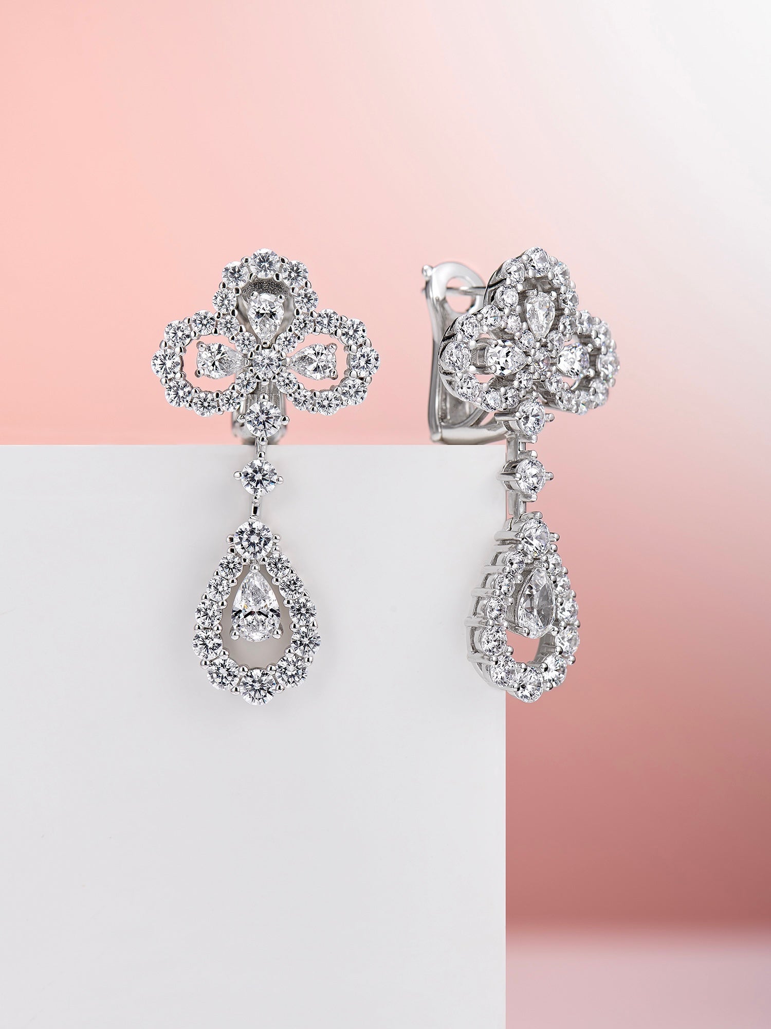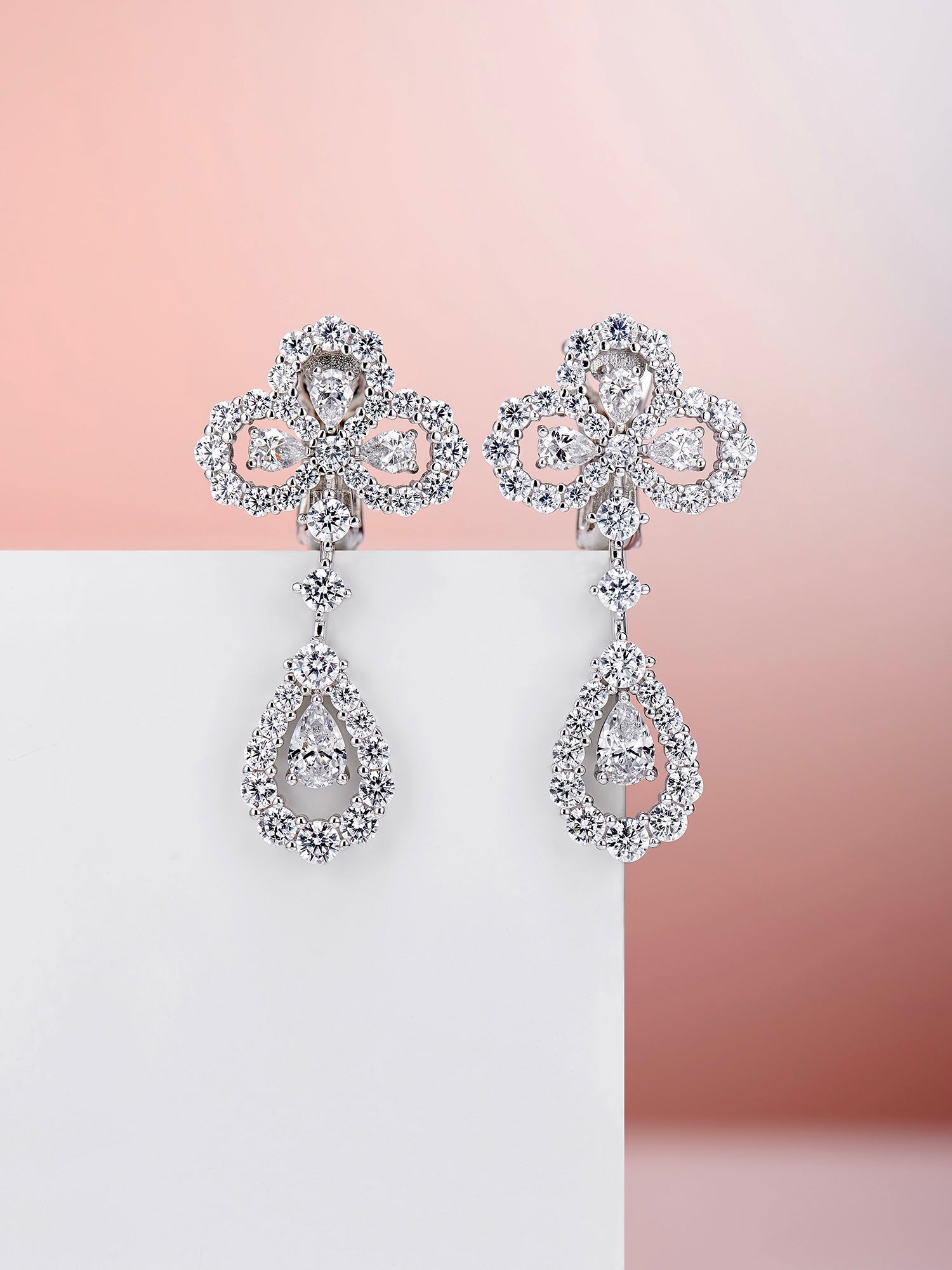 LOOP DIAMOND DROP SILVER EARRINGS