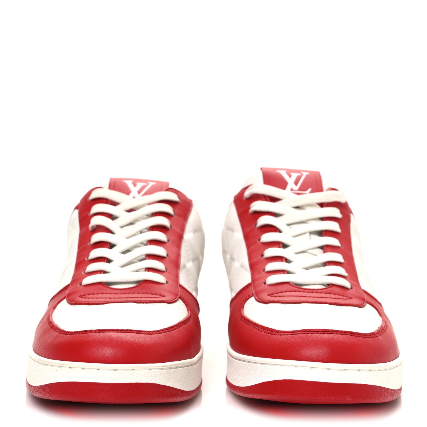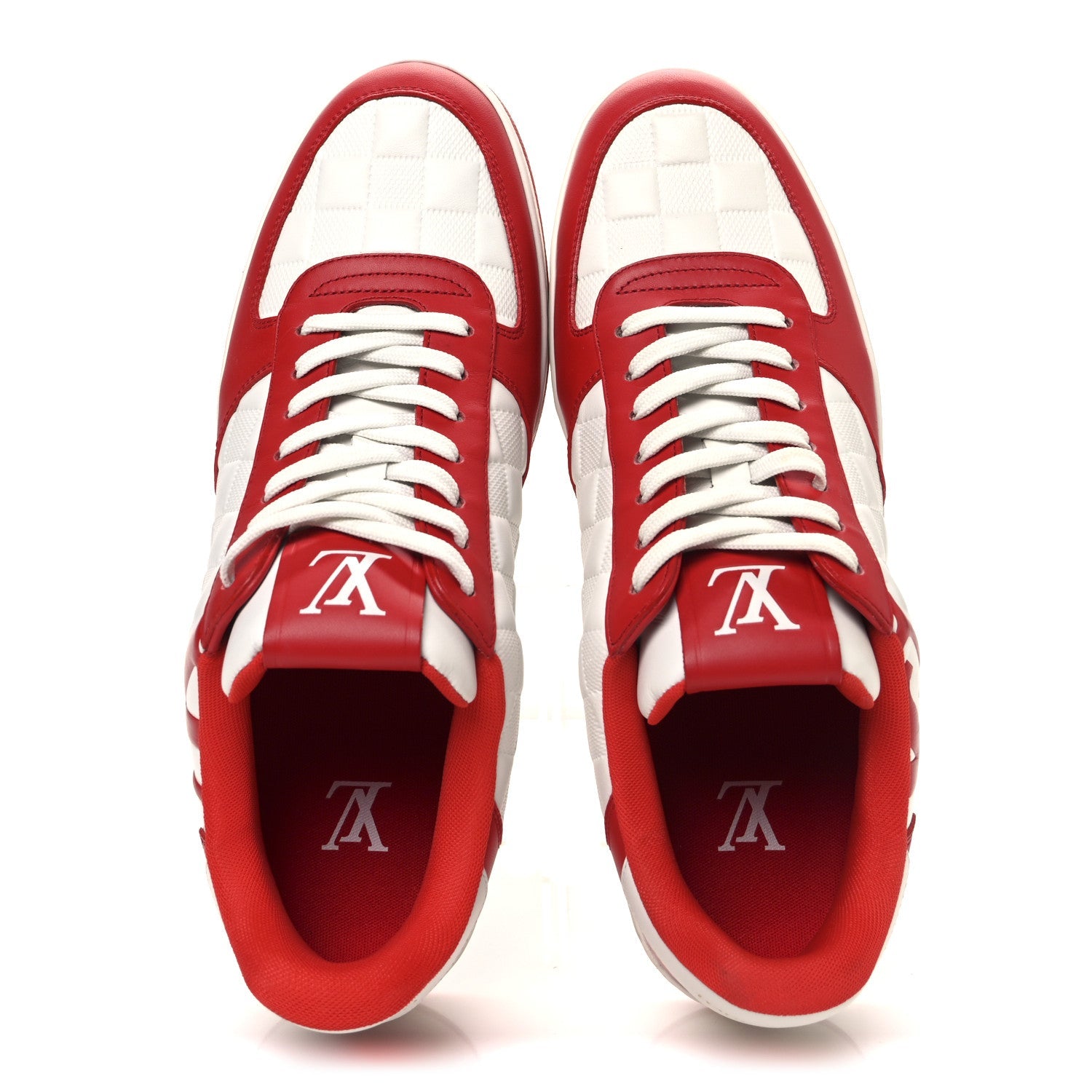 Calfskin Maxi Damier Mens Rivoli Sneakers 8 Orange White