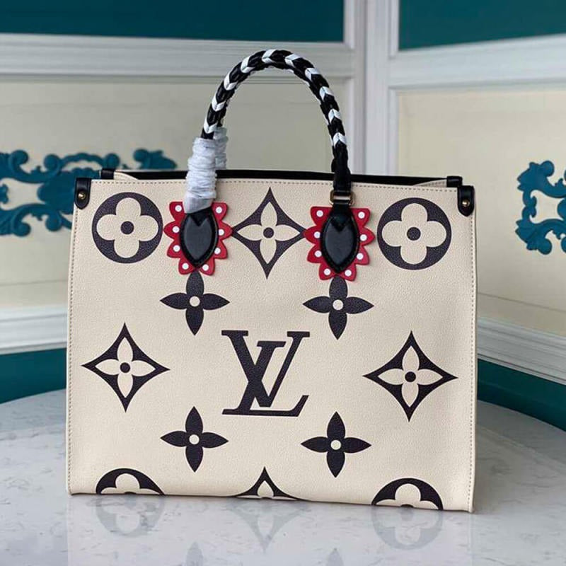 The OnTheGo GM tote bag in embossed leather is adorned with an Giant version of the iconic Monogram pattern. Braided top handles and eye-catching detailing around the handle mounts bring a touch of the street to this bag. The roomy interior, with its numerous inside pockets, make it perfect for everyday wear.