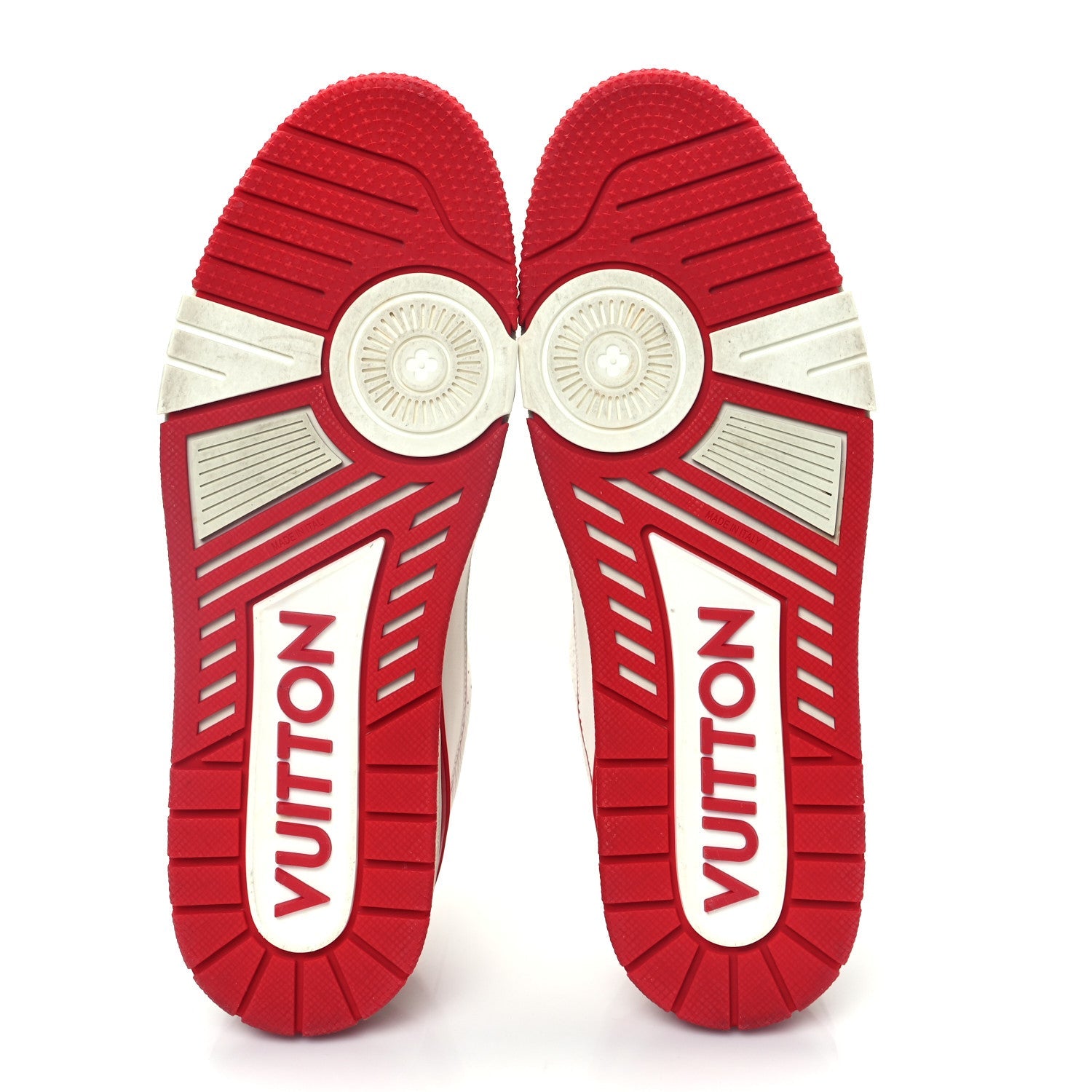 Grained Calfskin Script Mens LV Trainer Sneakers 9 Red