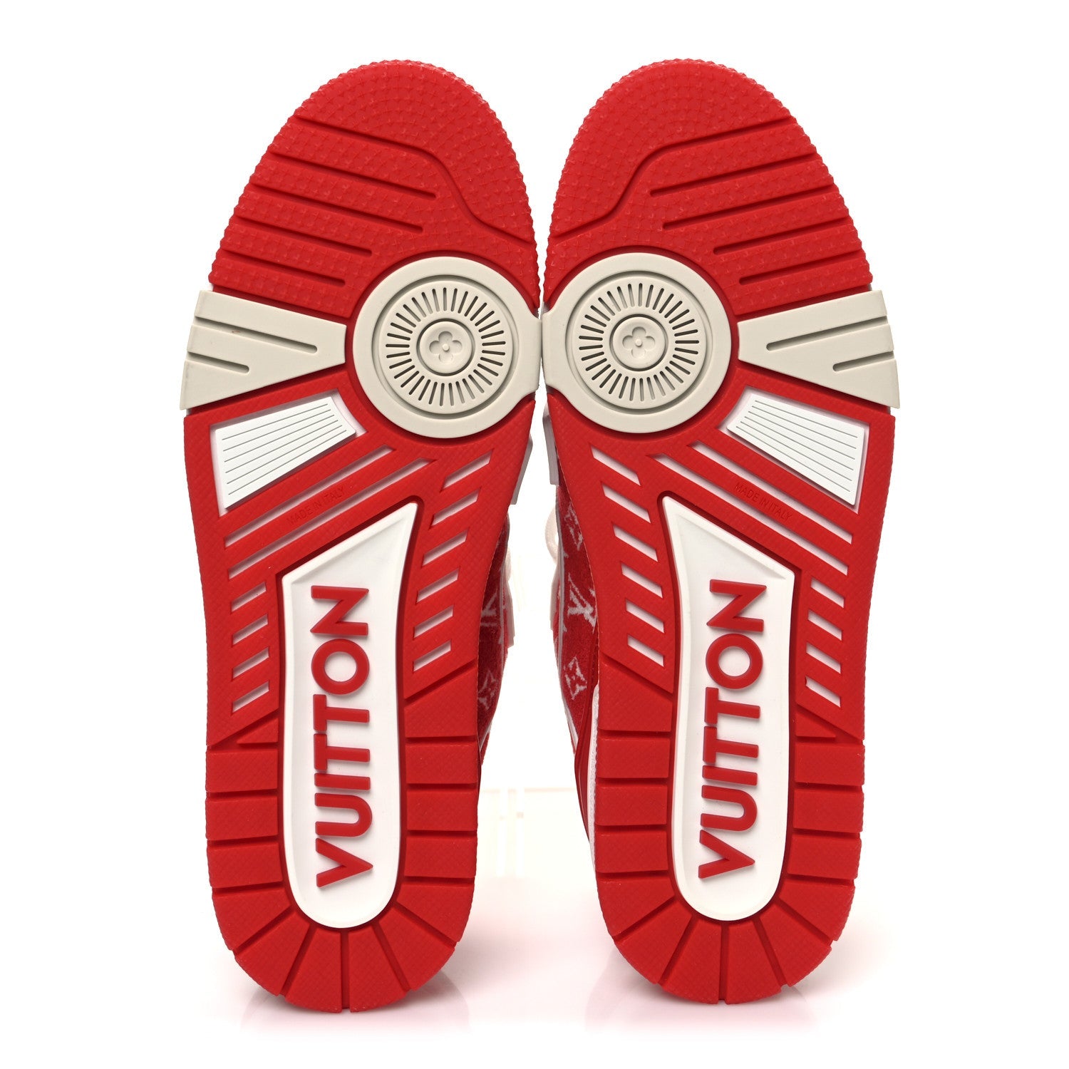 Jacquard Velvet Monogram Mens LV Trainer Sneakers 6.5 Red