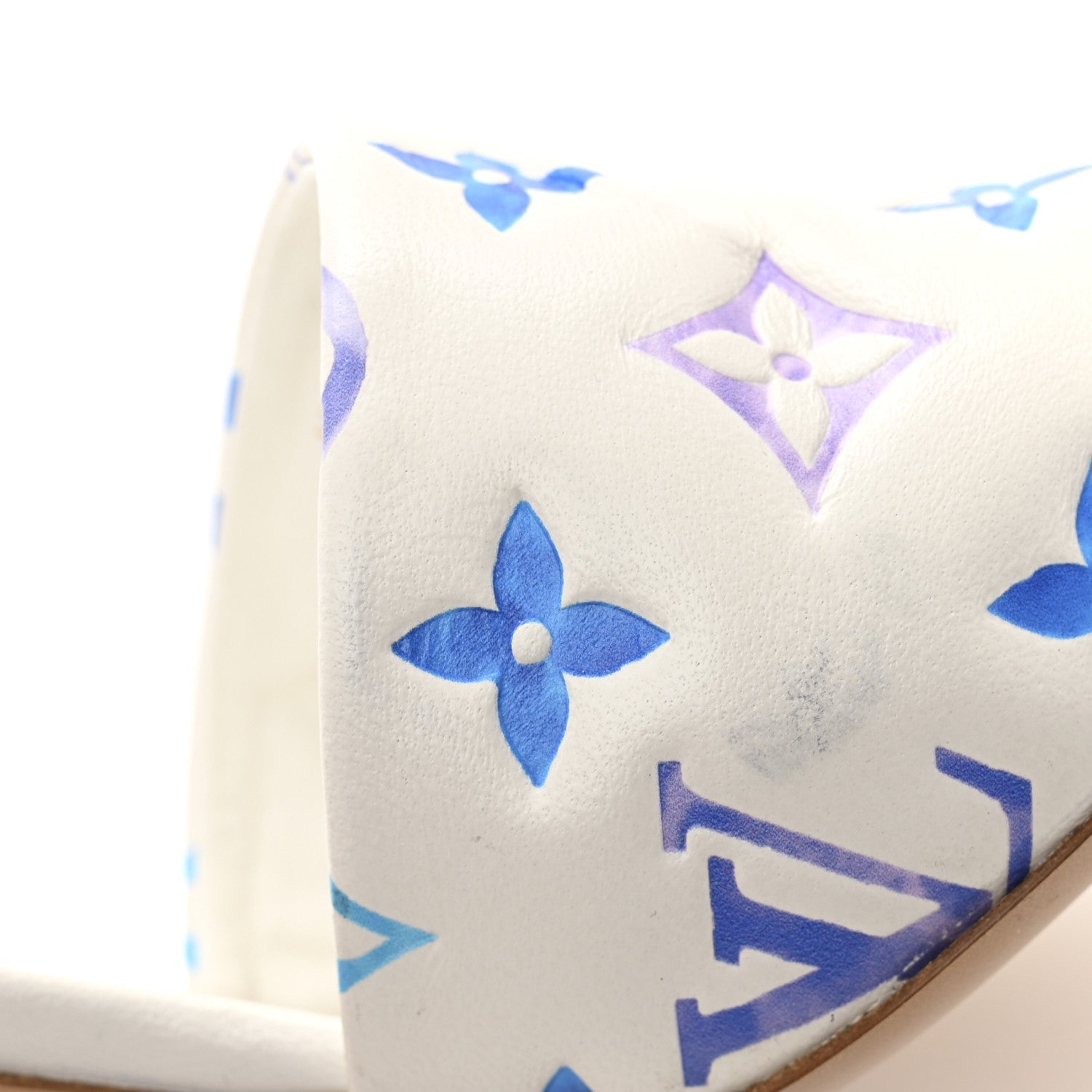 Lambskin Embossed Monogram By The Pool Revival High Heel Mules 39 White Blue Purple