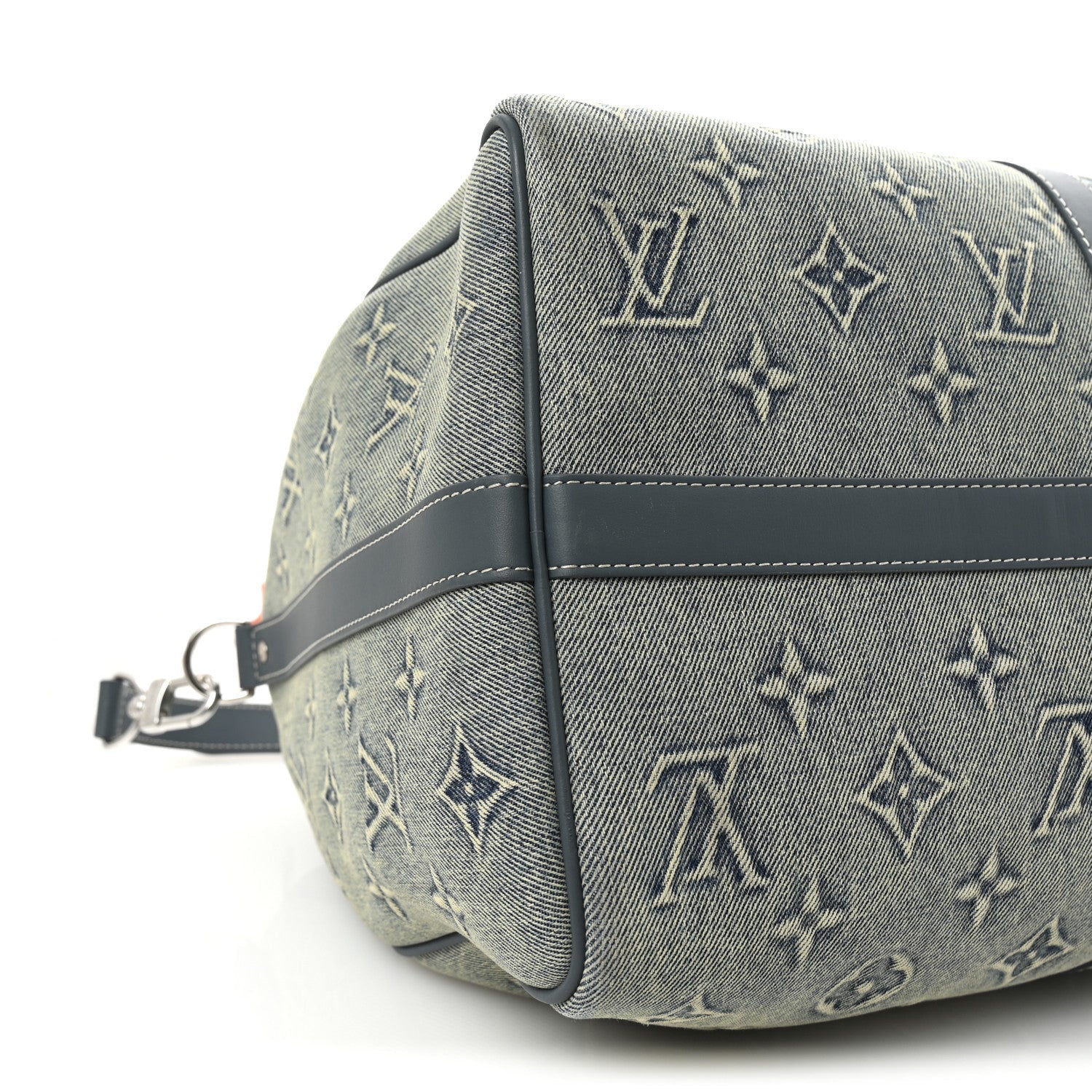 Monogram Washed Denim Keepall Bandouliere 50 Blue
