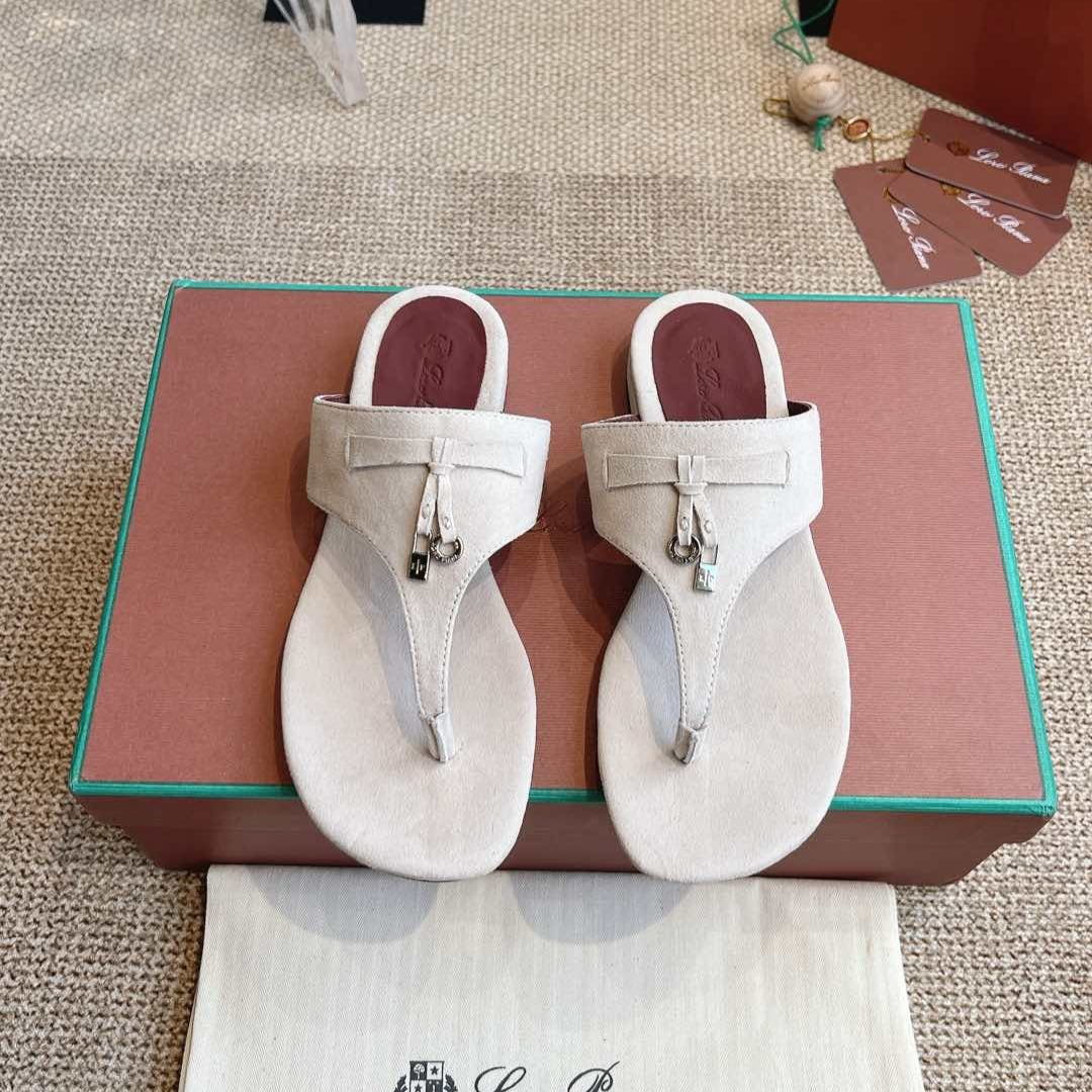 LP 25C Thong Slide Sandal White Suede 208108