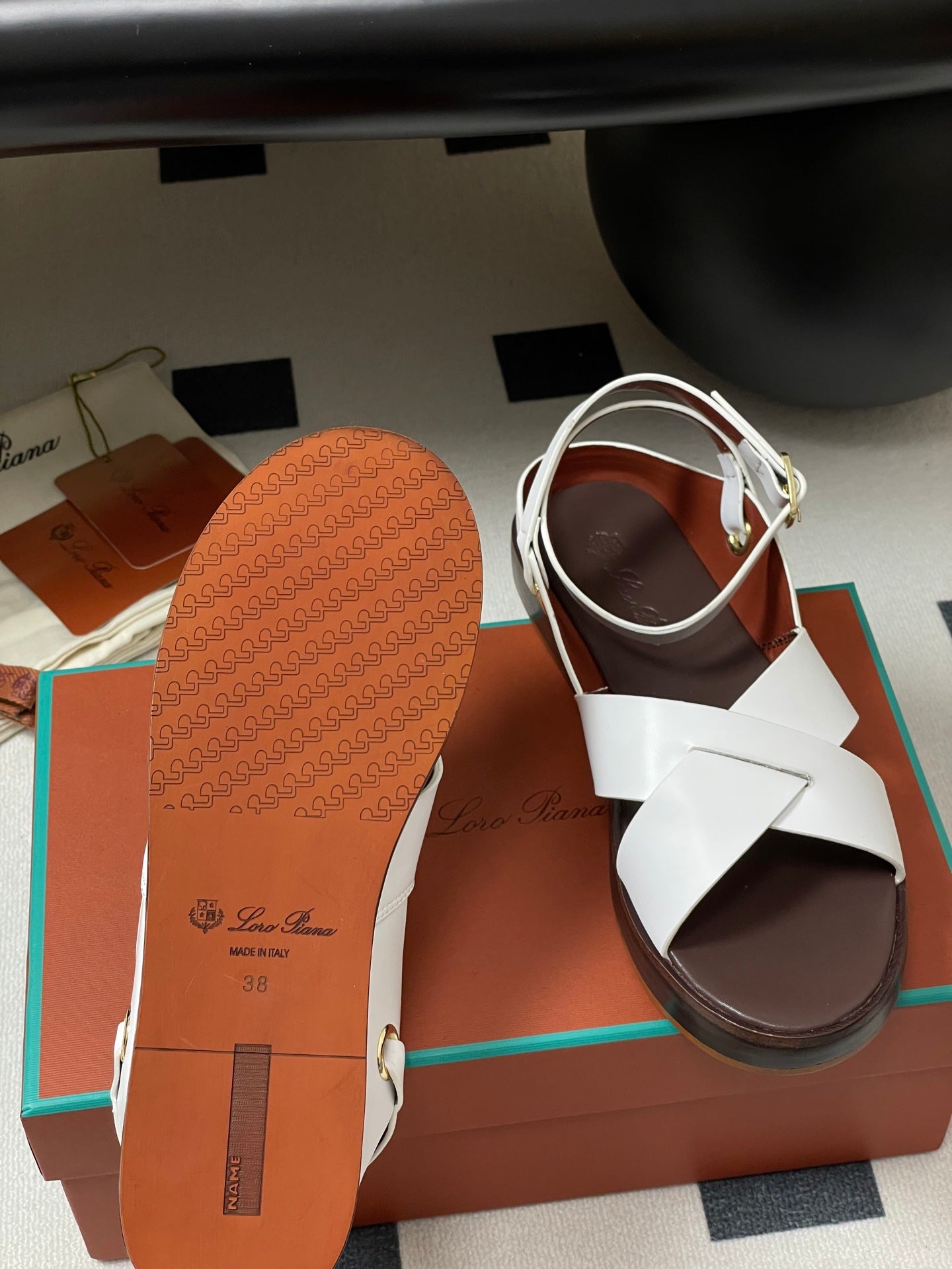 LP Sandal White Brown Cowhide 312171