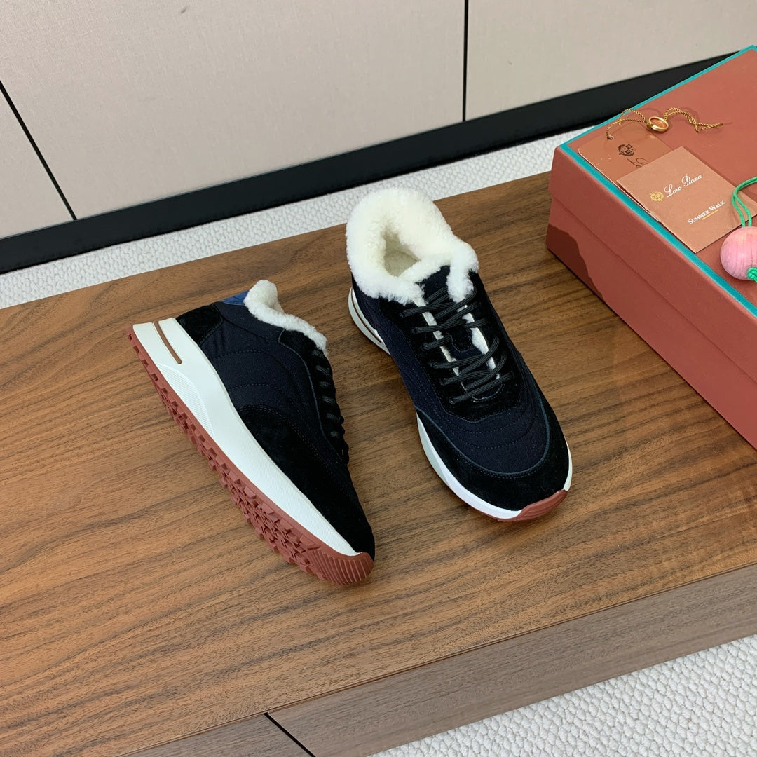 LP Week-end Walk Sneakers In Black Mix Navy Blue Denim With Wool Fleece Lining 984281