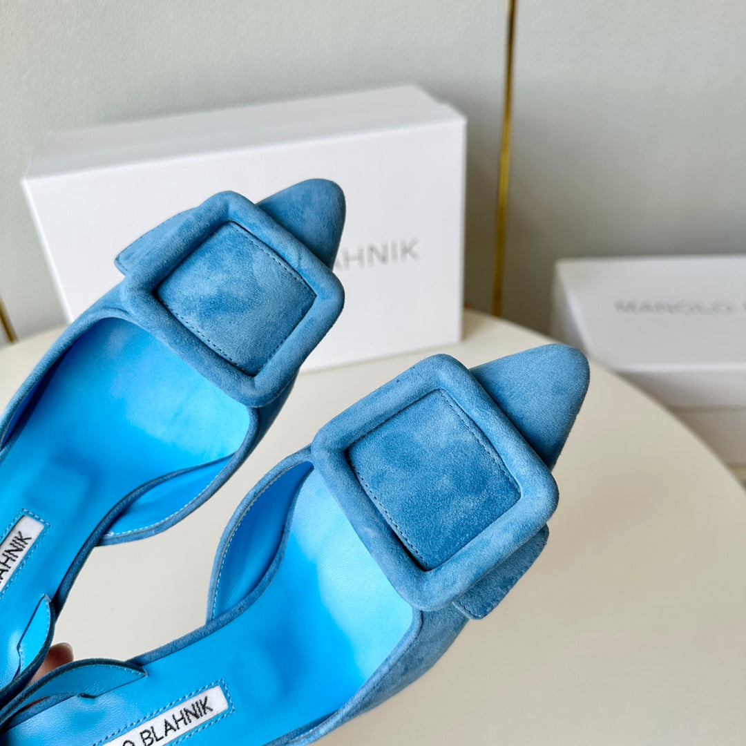 Manolo Slingback 7cm Blue Suede Leather Bottom 451207