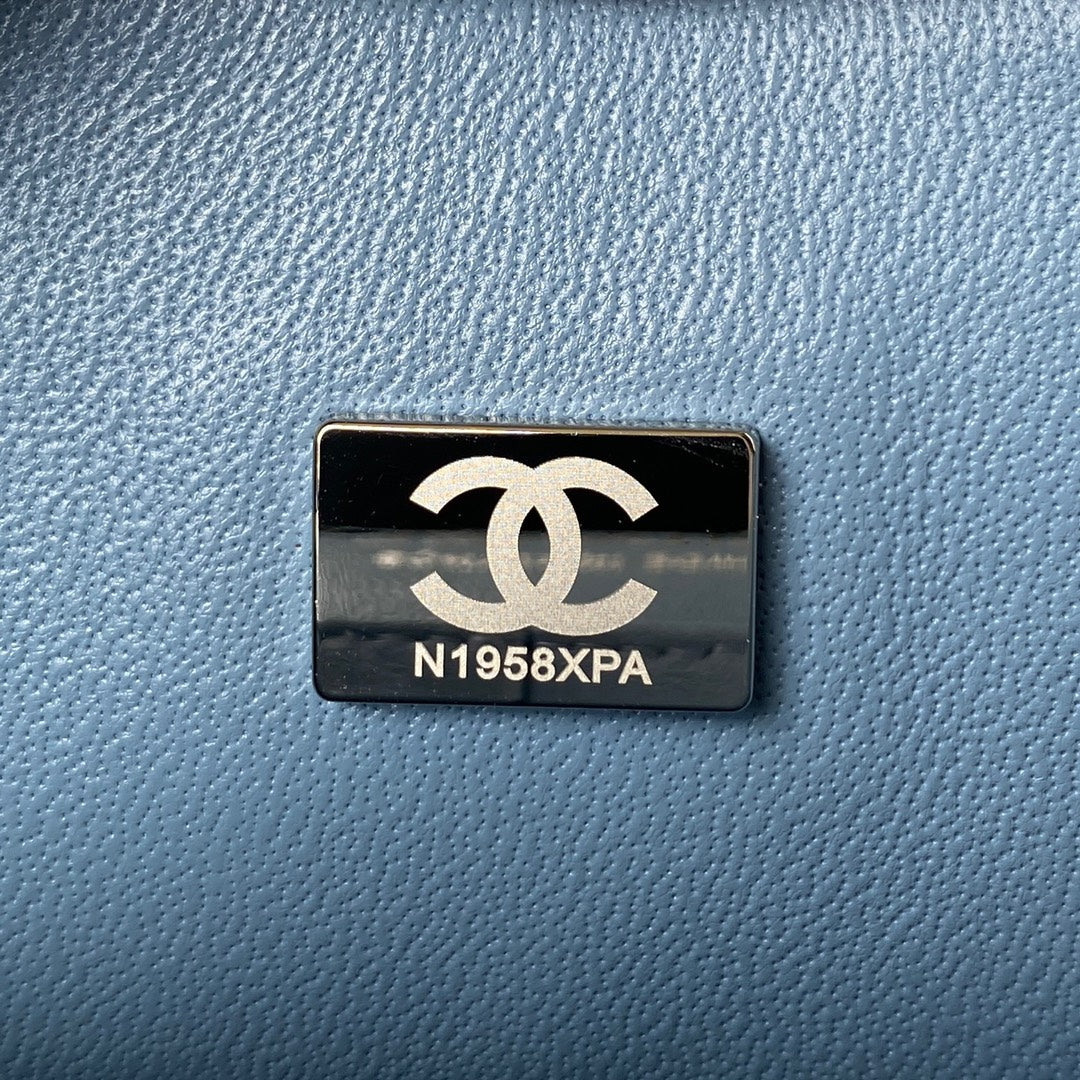 Medium Classic Flap Bag 23cm Blue Lambskin Silver Hardware