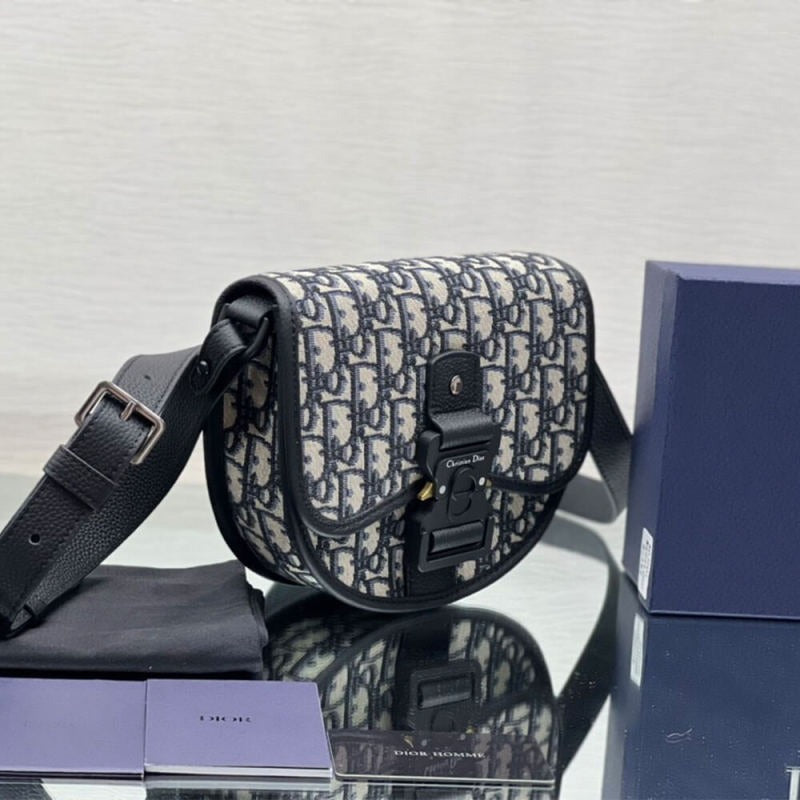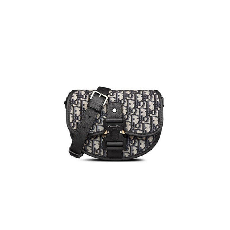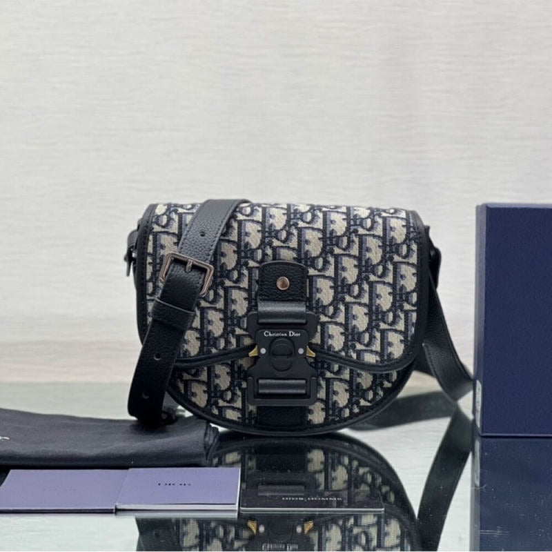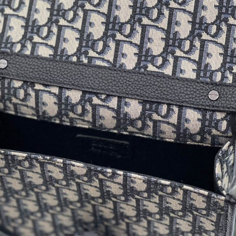 Aluminum buckle with Christian Dior signature and CD initials on flap closure