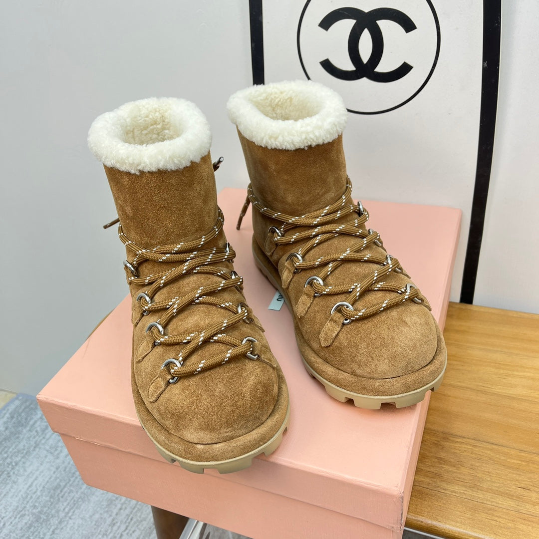 Miu Ankle Boots Brown Stone Yellow Suede