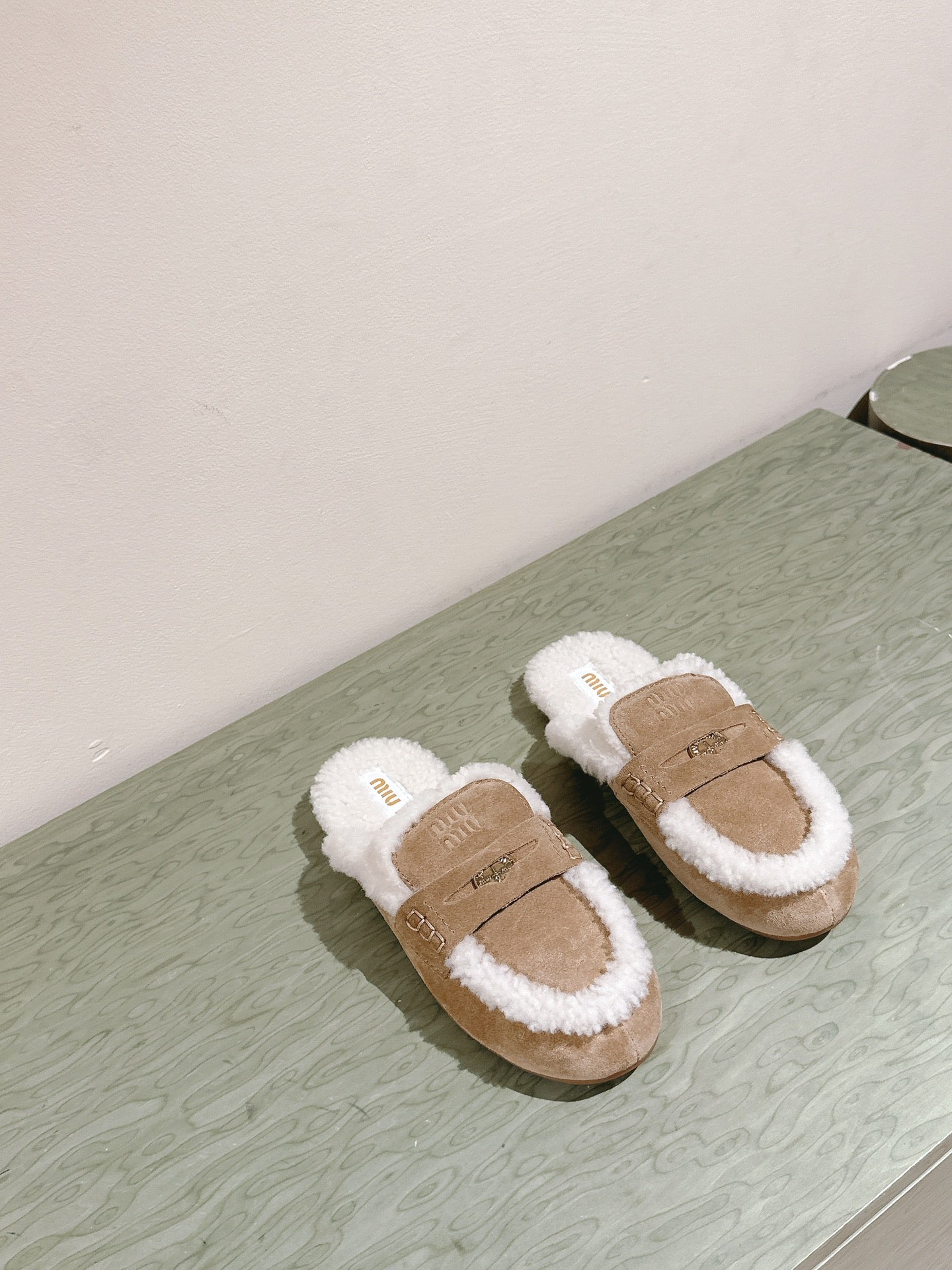 Miu Mule Half Fur Khaki Suede