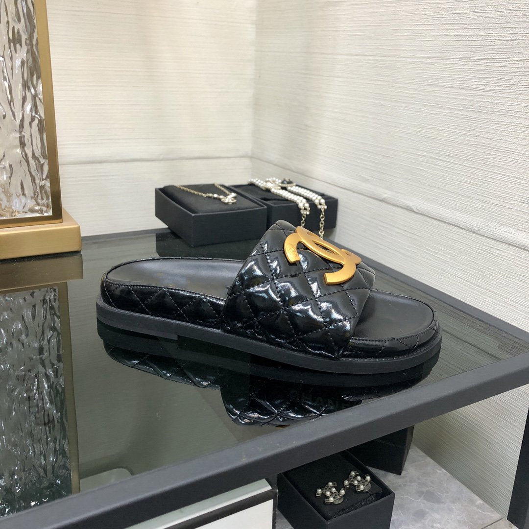 mule sandal 30 black quilted waxed leather