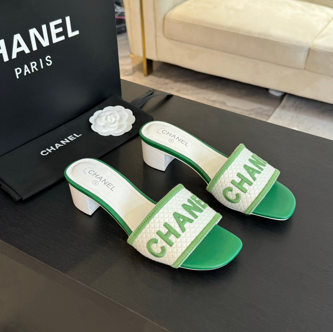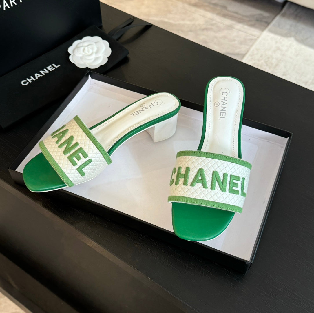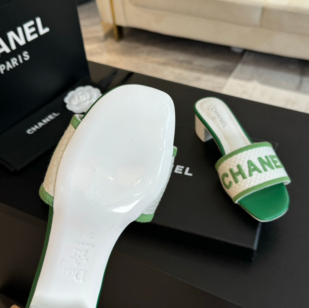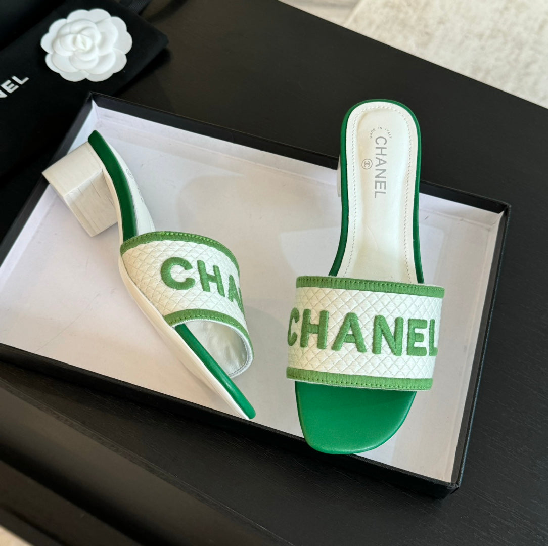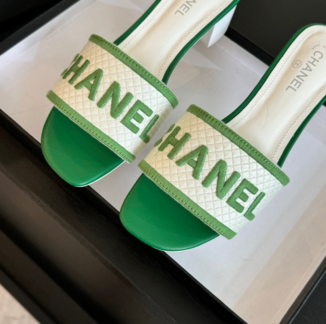 mule sandal 45 white green fabric embroidery