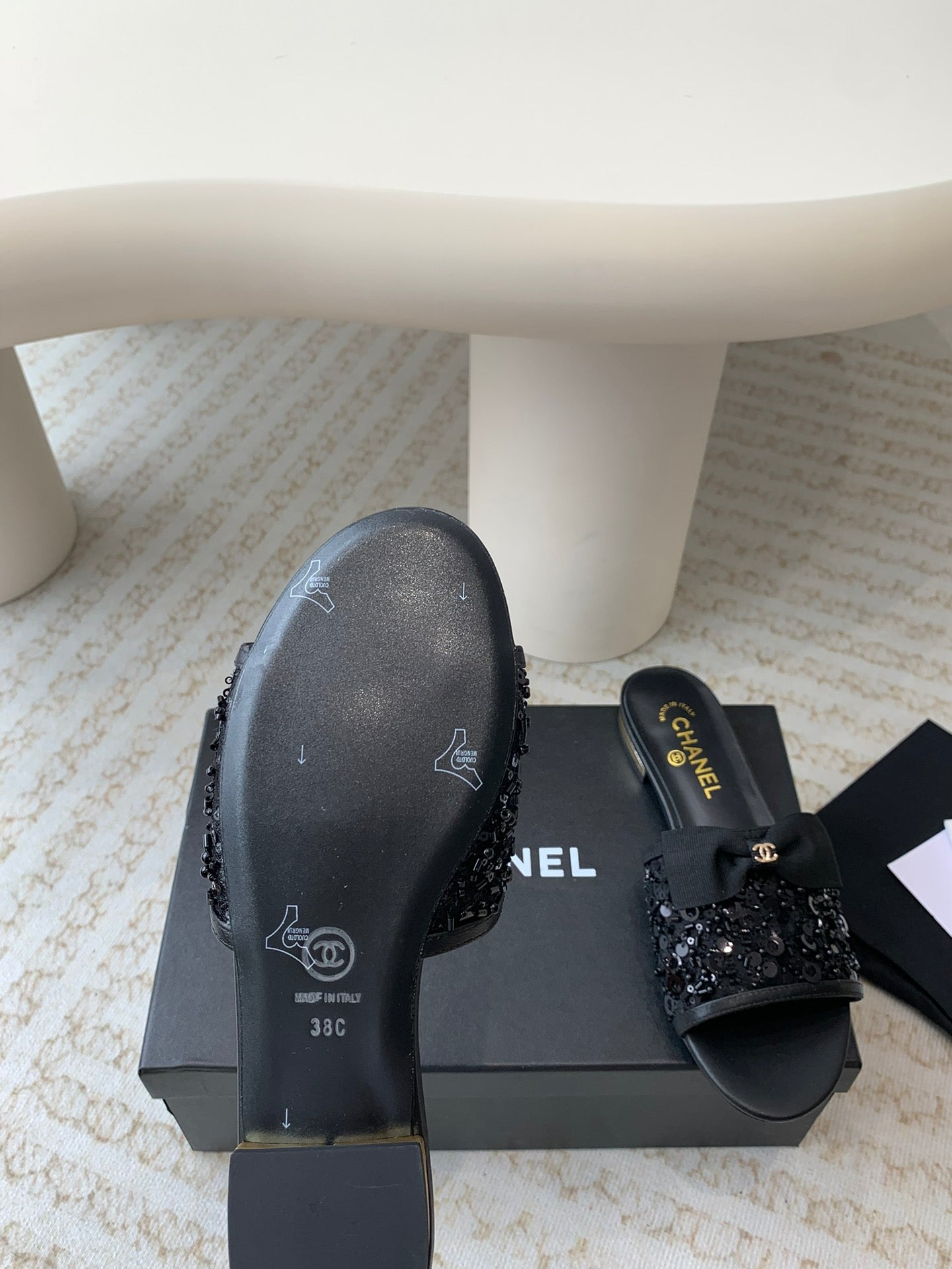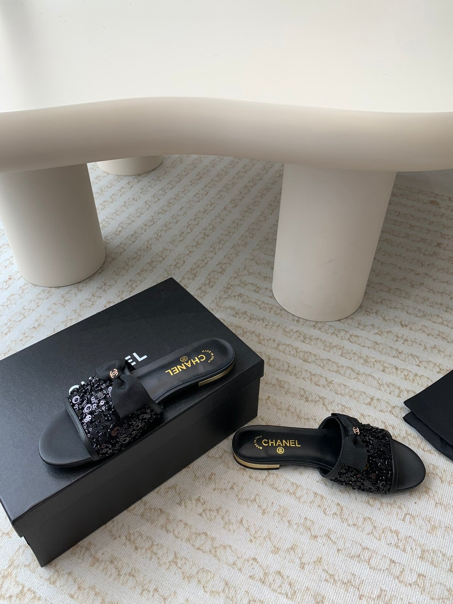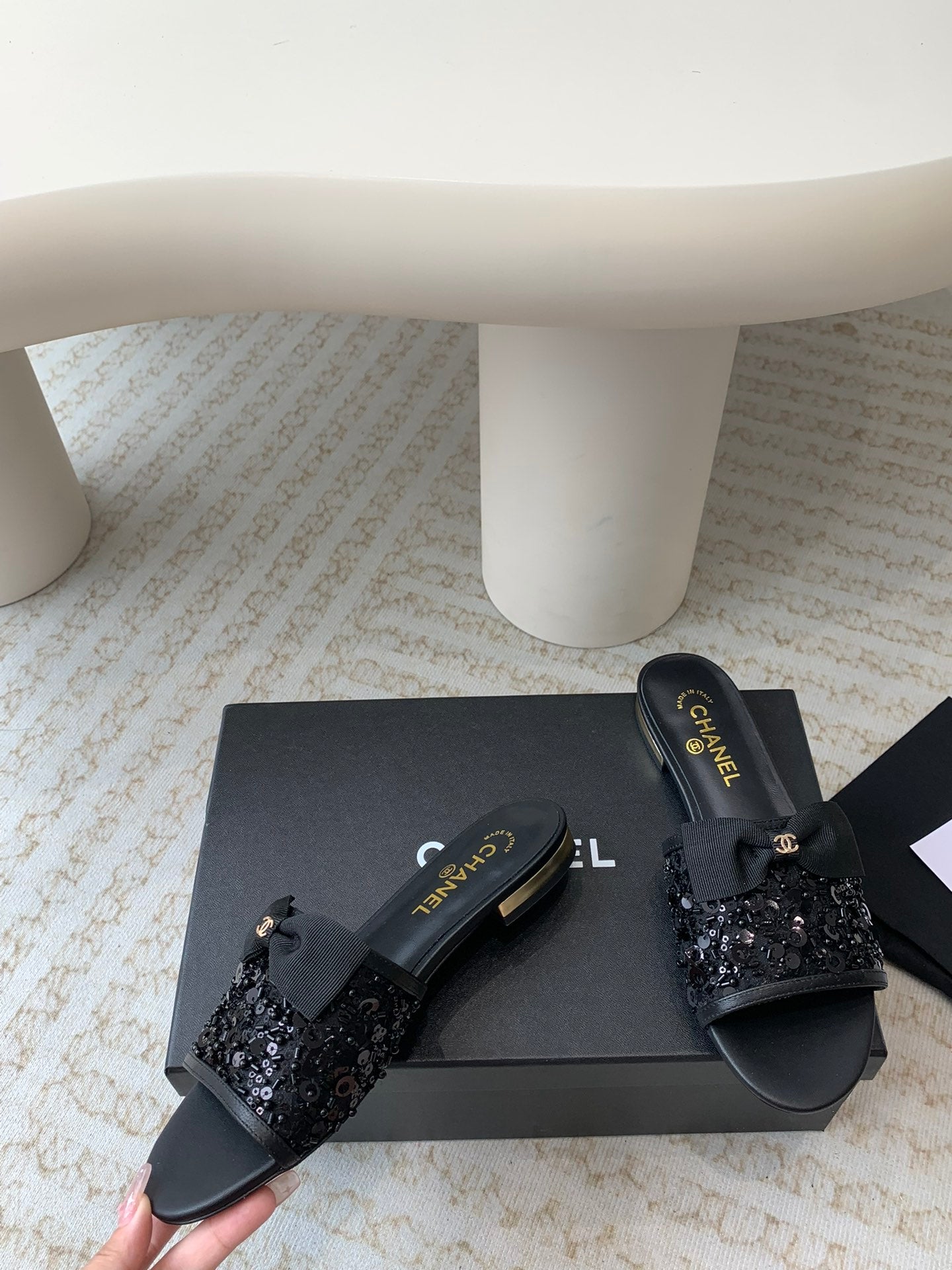 mule sandal black calfskin glitter sequin