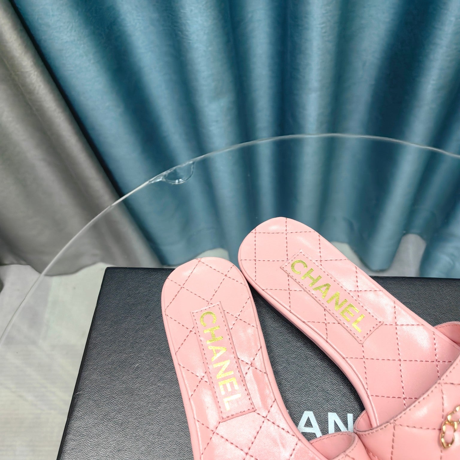 mule sandal quilted pink calfskin