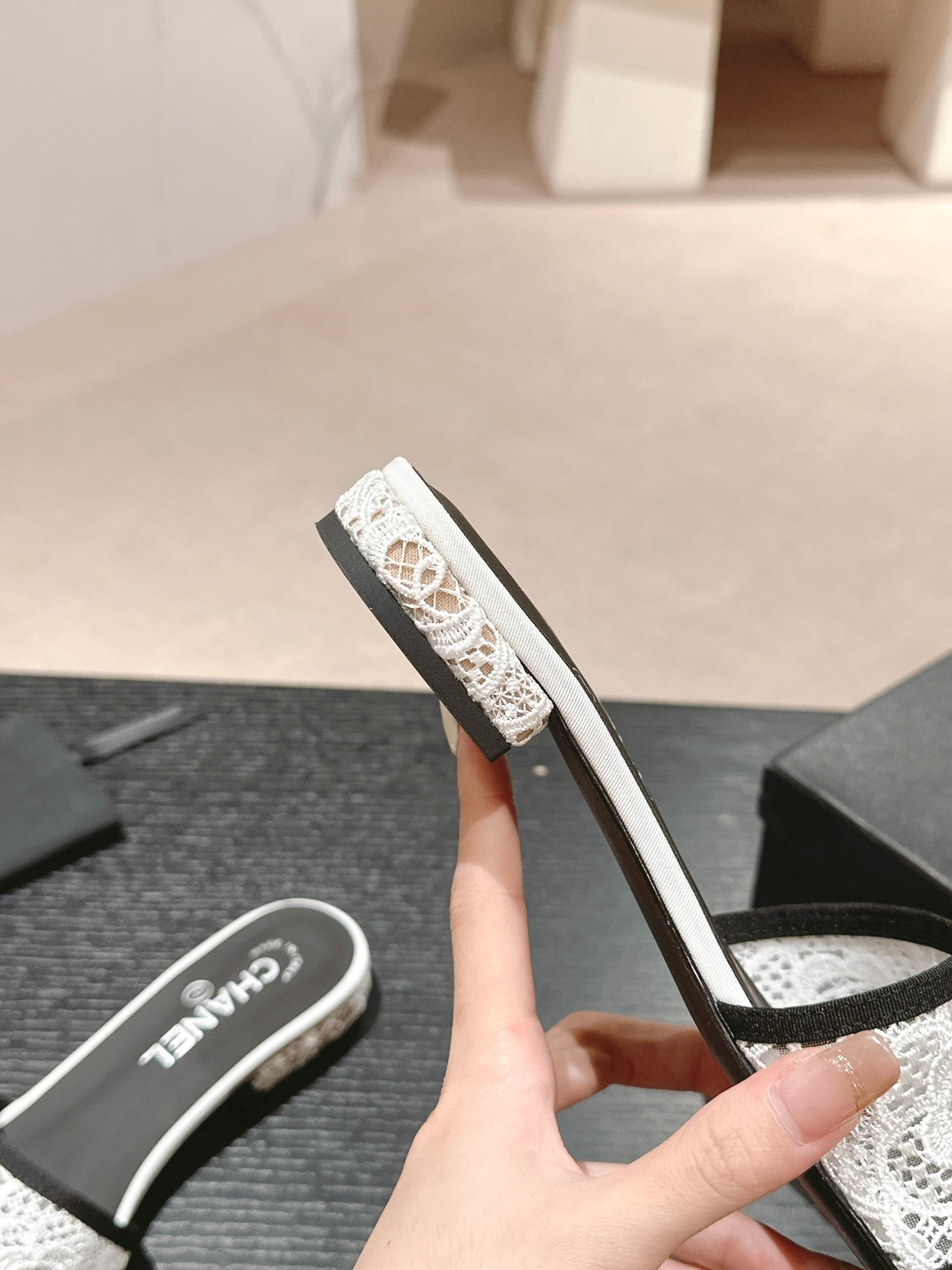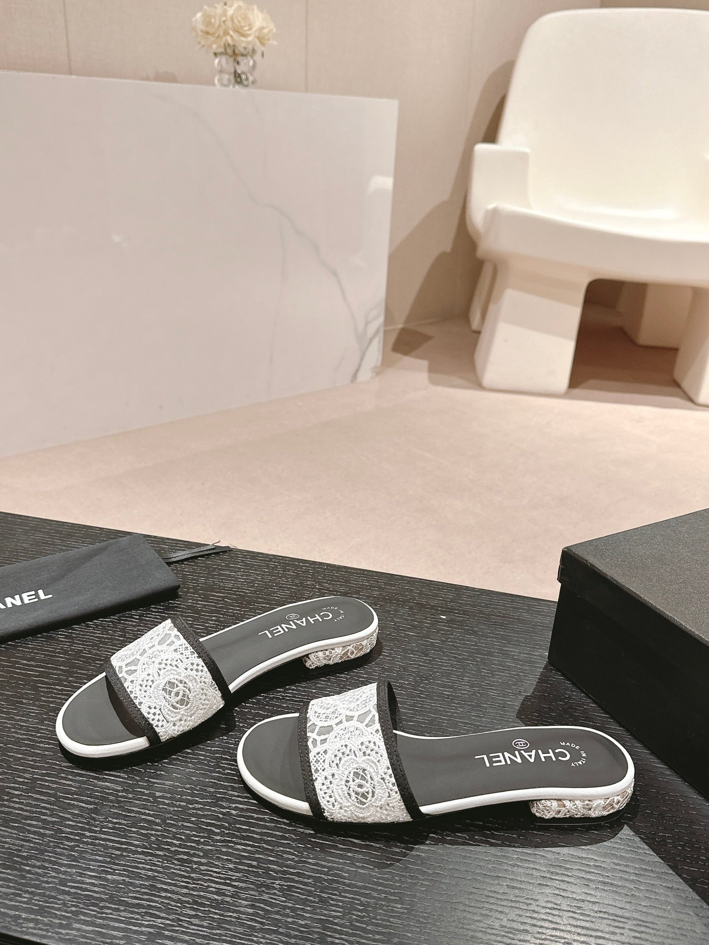mule sandal white lace fabric