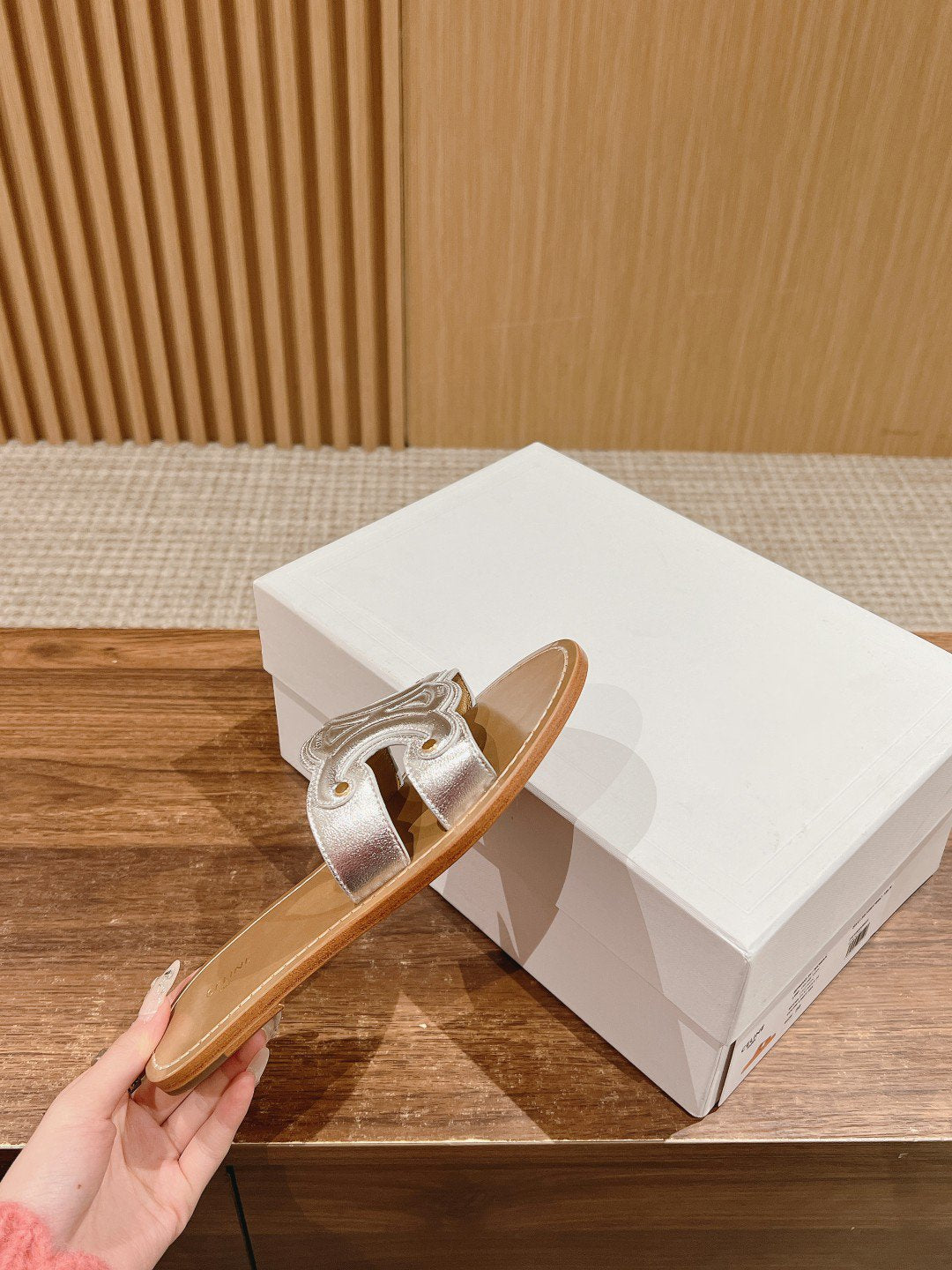 mule triomphe silver brown metalic calfskin