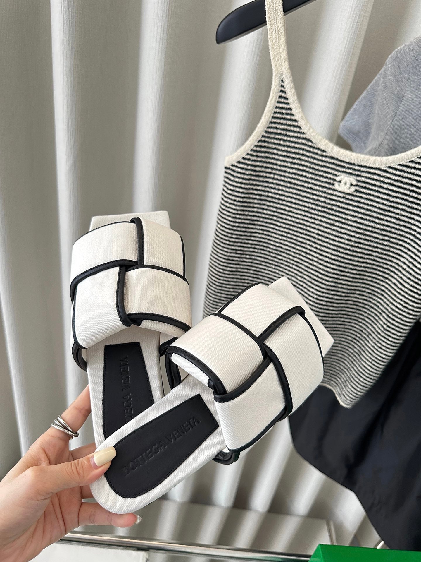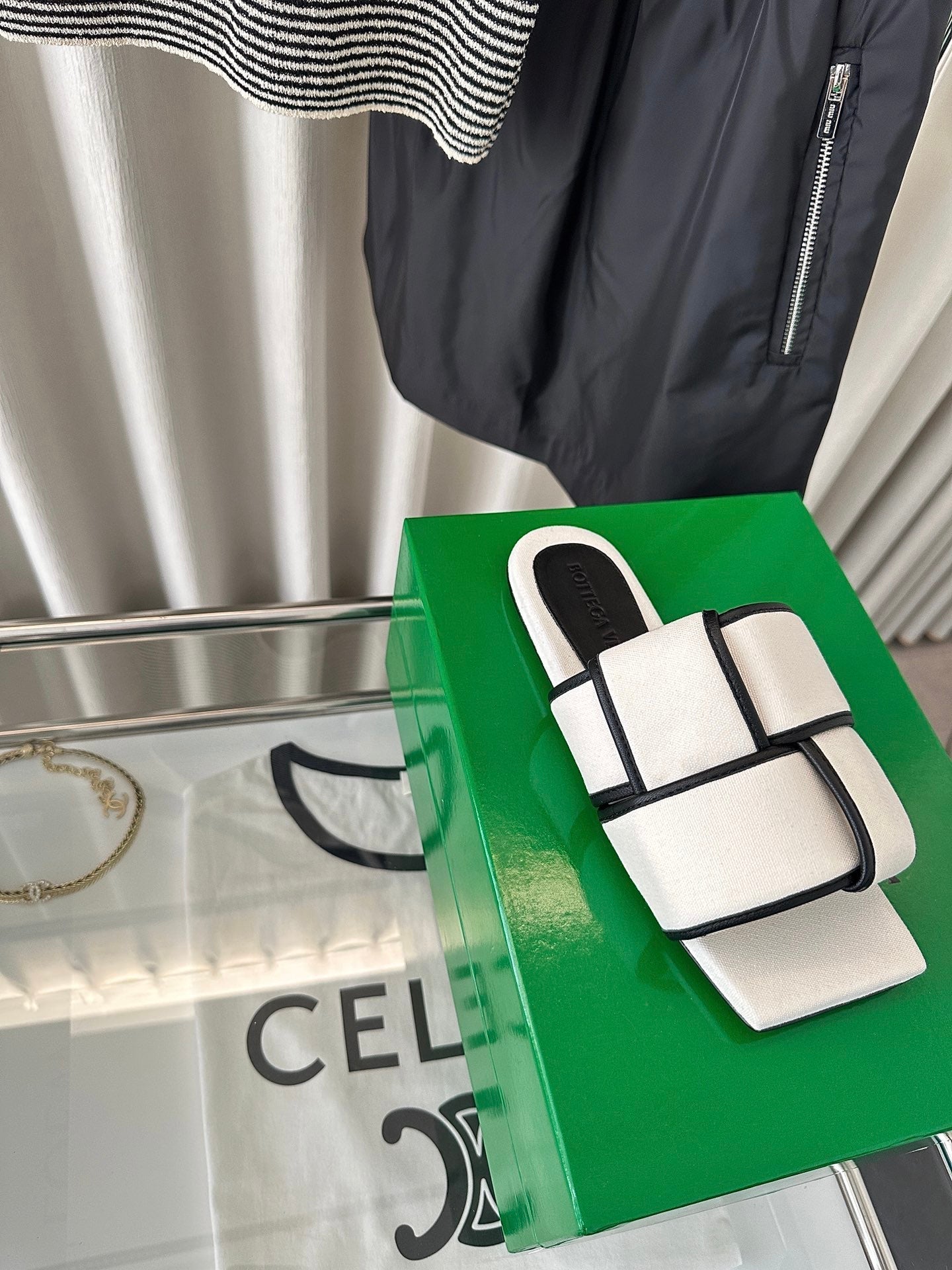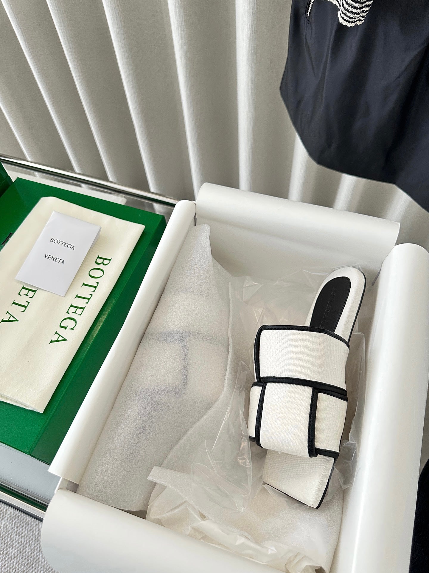 patch mule flat white black cotton lambskin
