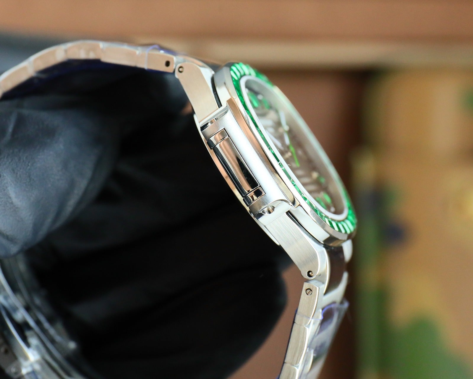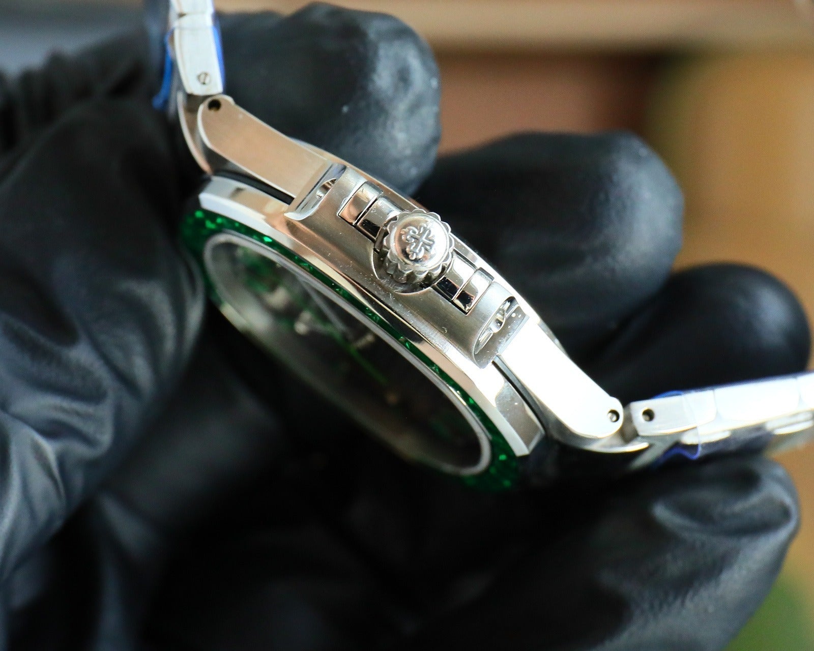 Experience Dazzling Luxury: Patek Philippe Nautilus Style Automatic Watch with Emerald-Set Bezel