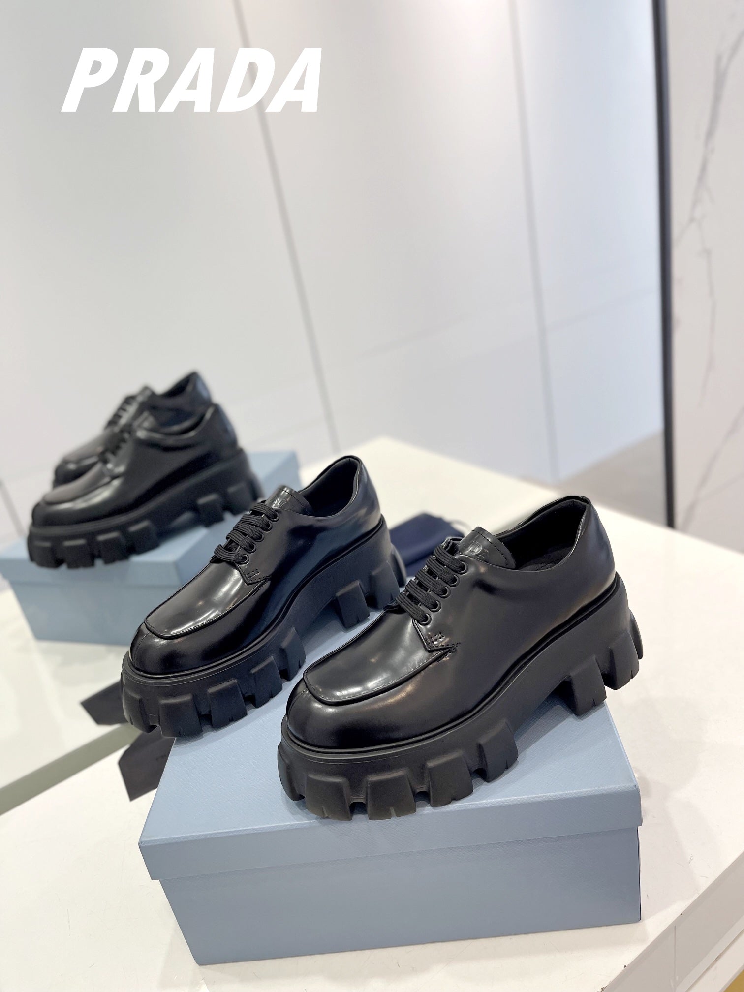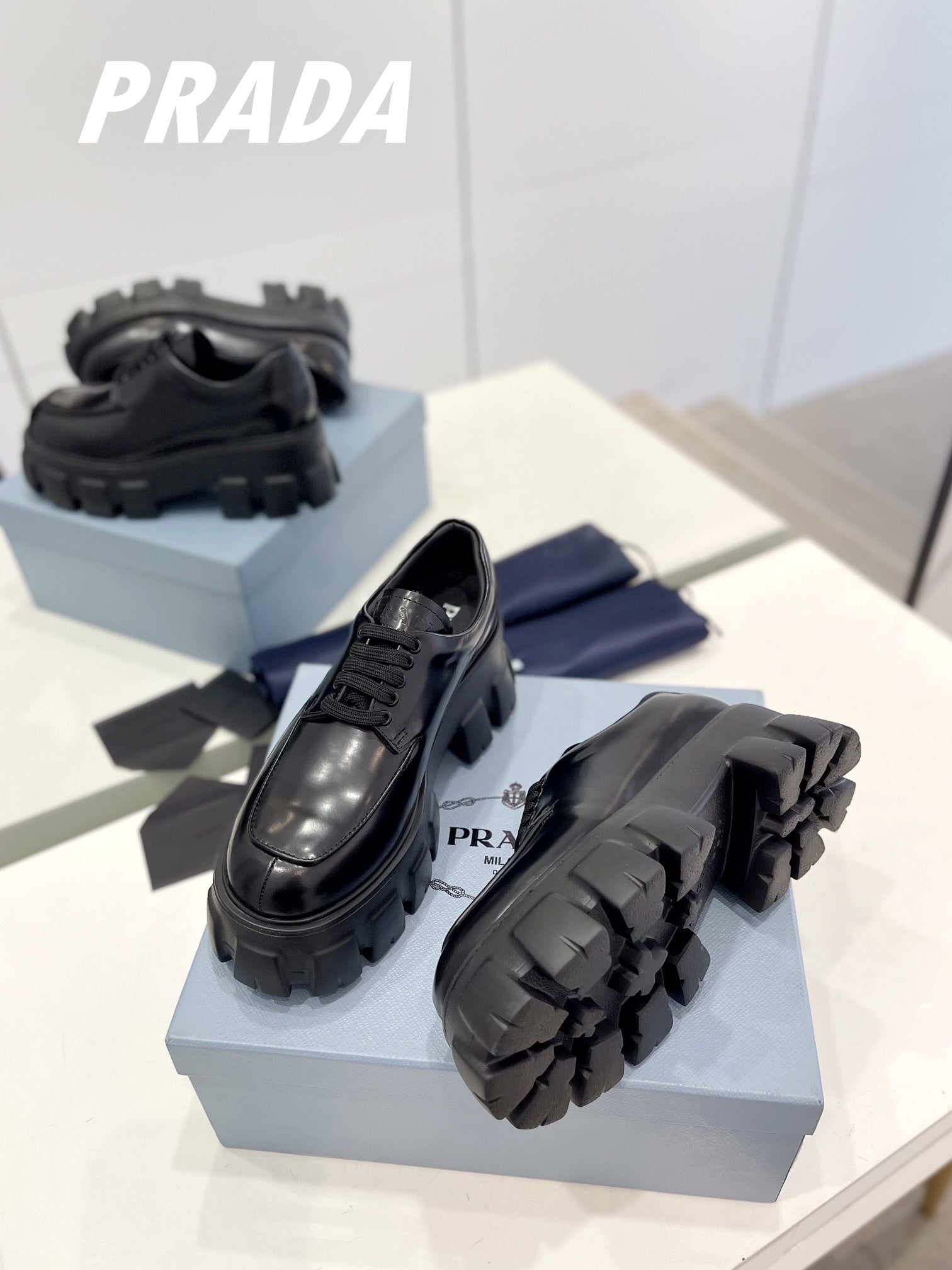 PRA BRUSHED LEATHER MONOLITH LACE-UP LOAFERS BLACK