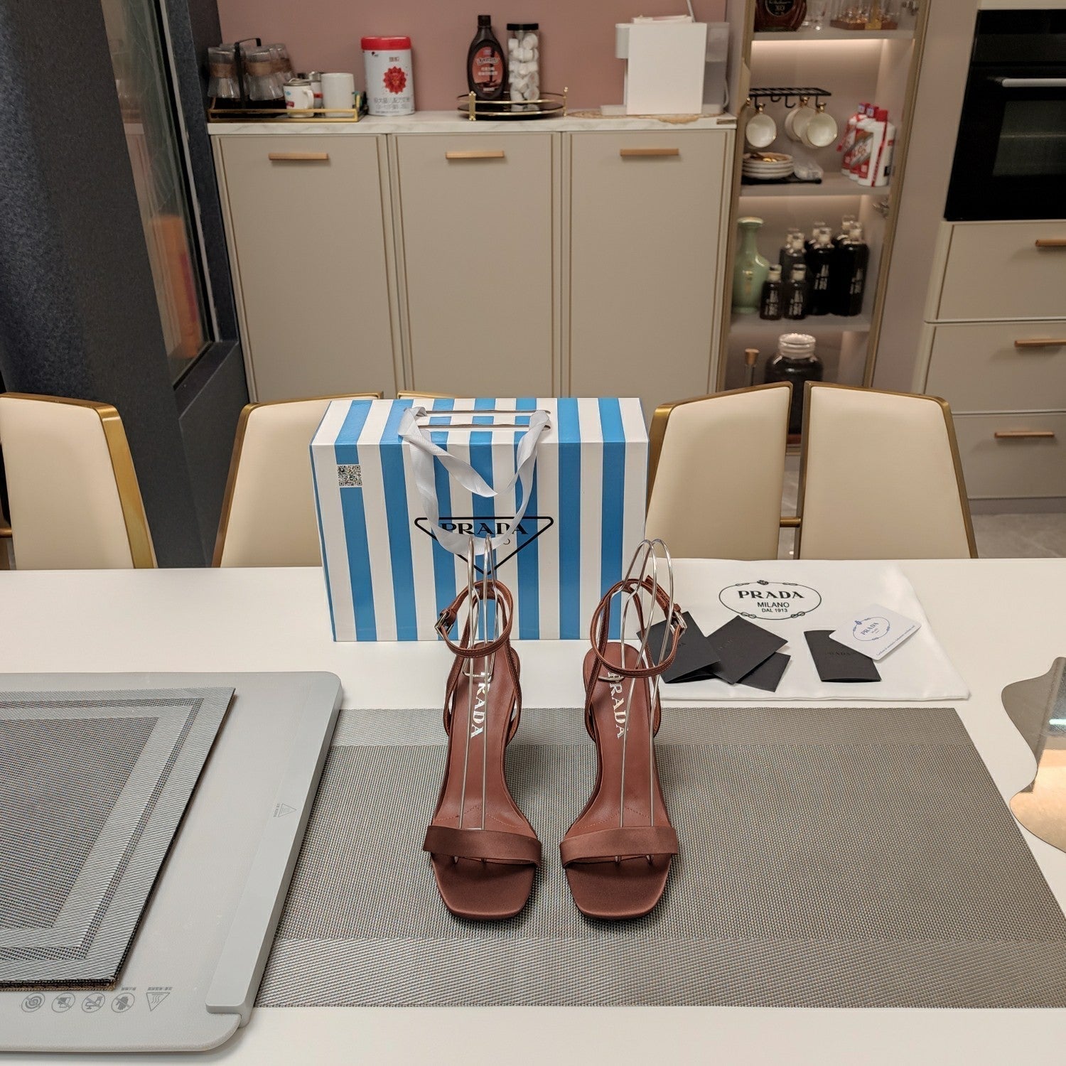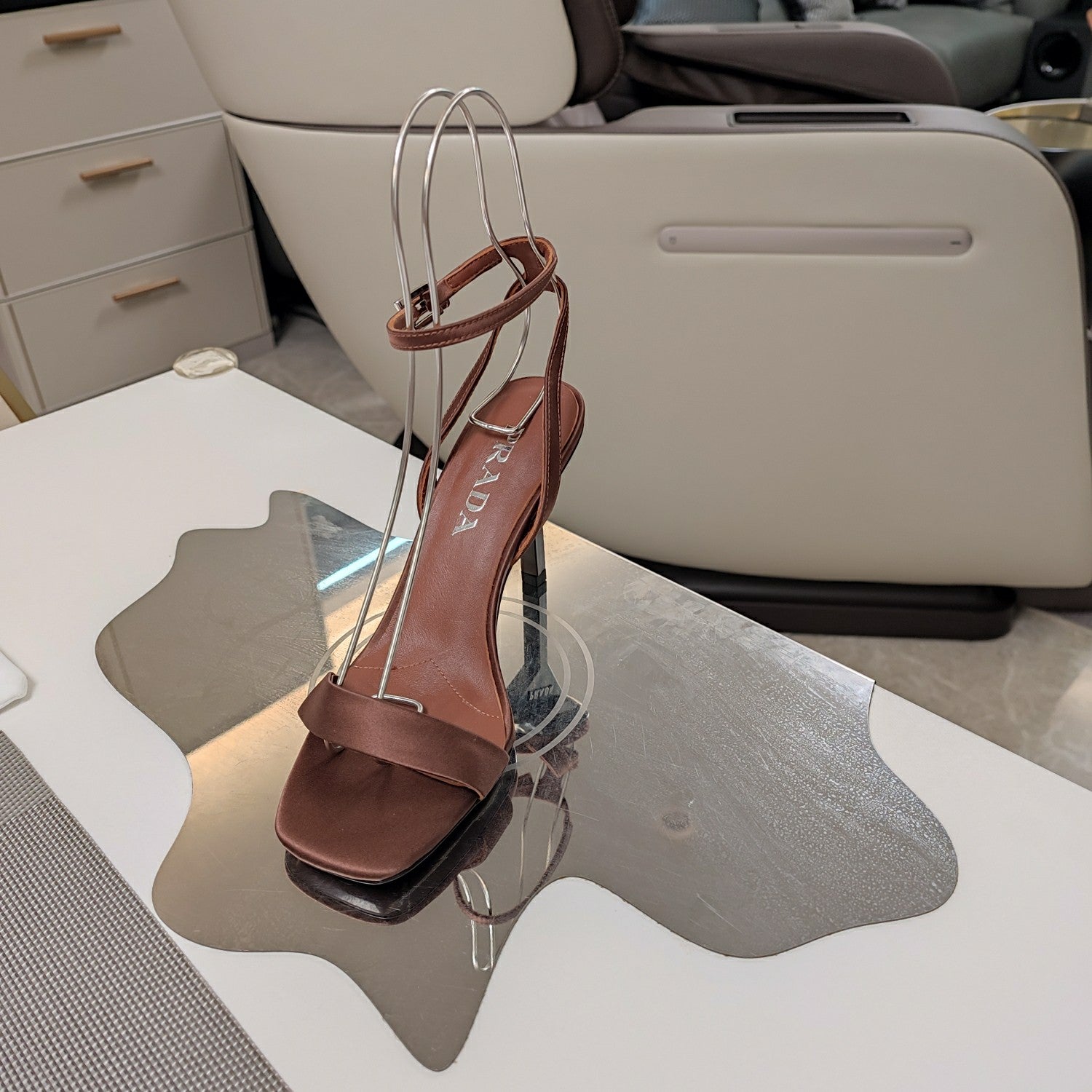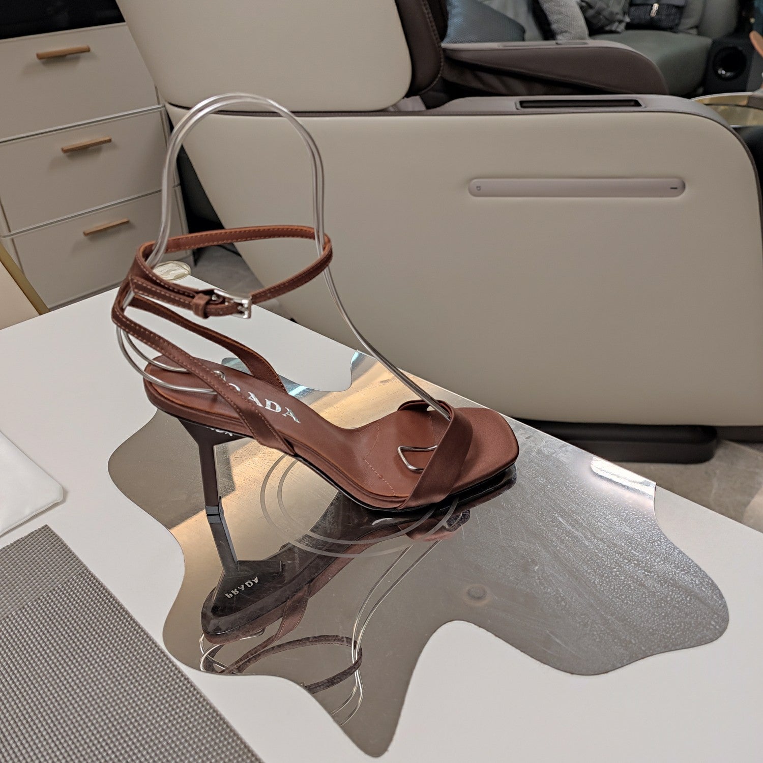 PRA HIGH-HEELED SANDALS CARAMEL SATIN