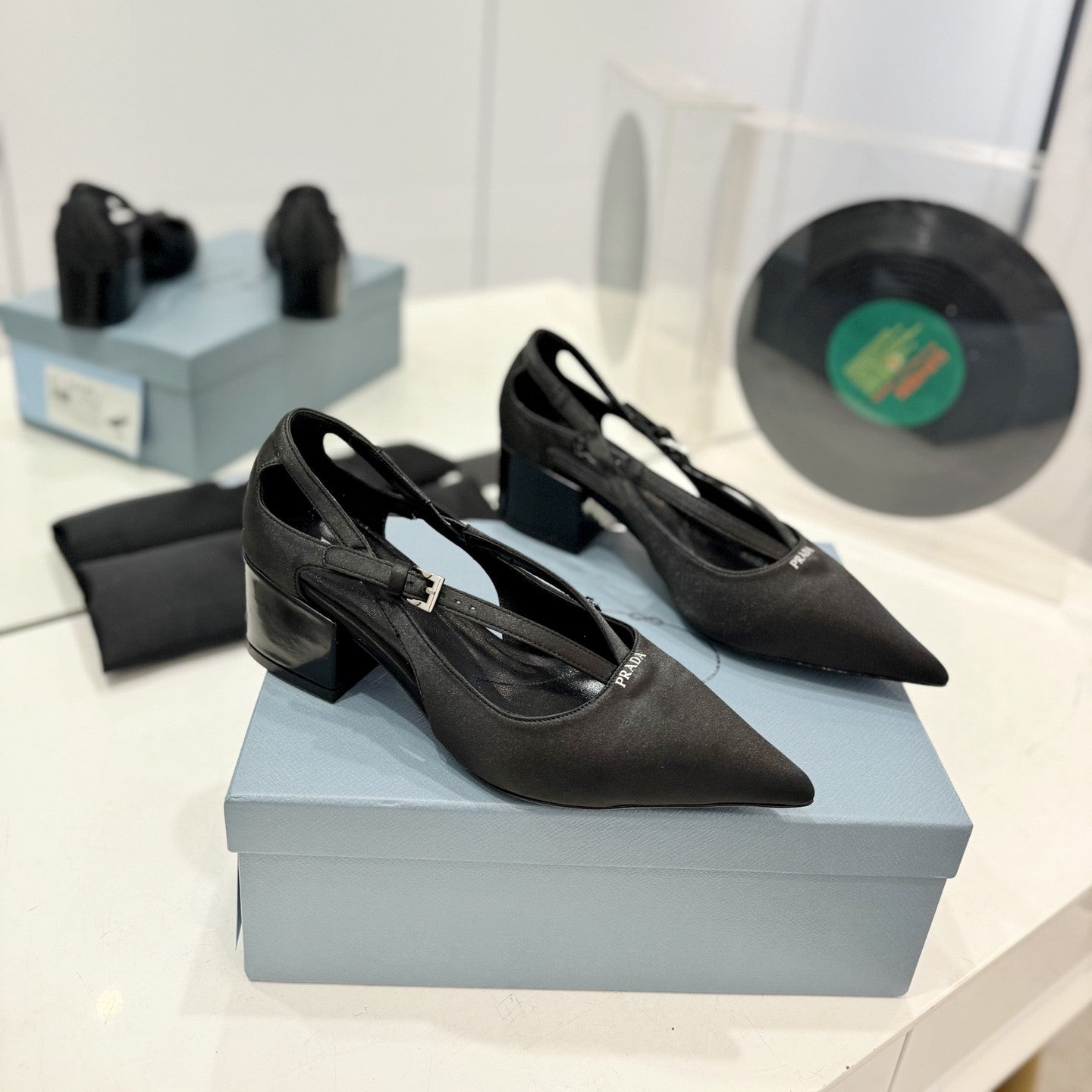 Pra Pumps 50 Square Sole Black Suede Fabric