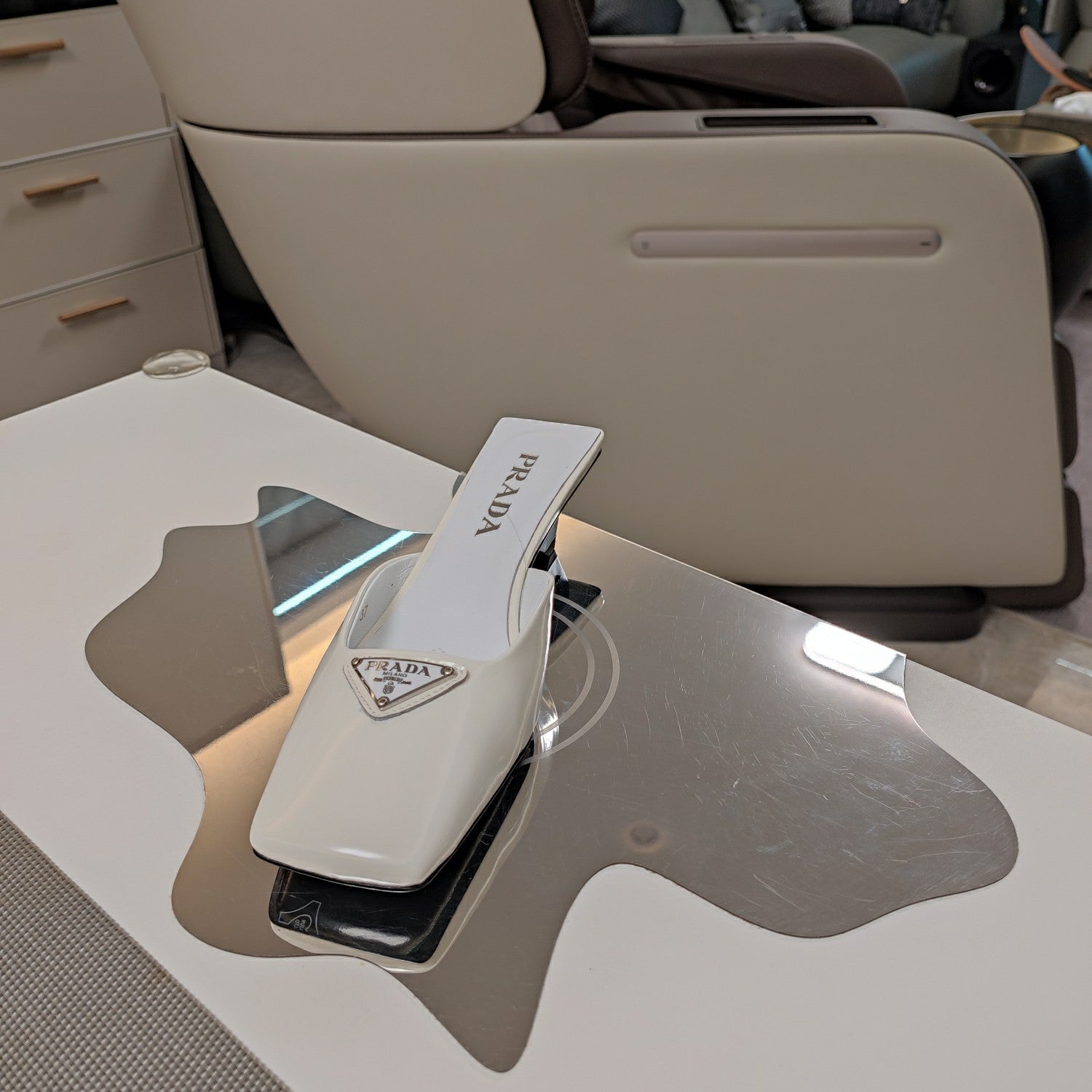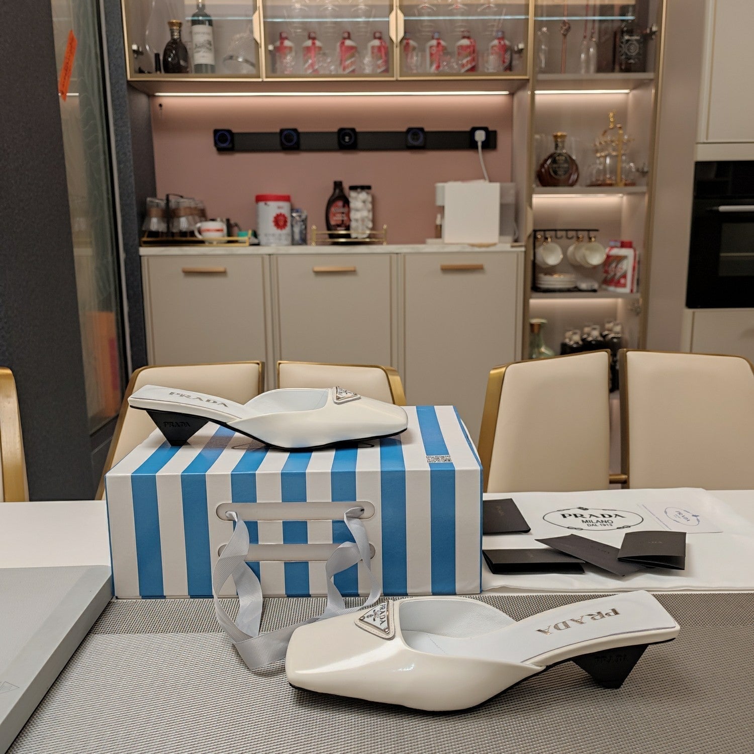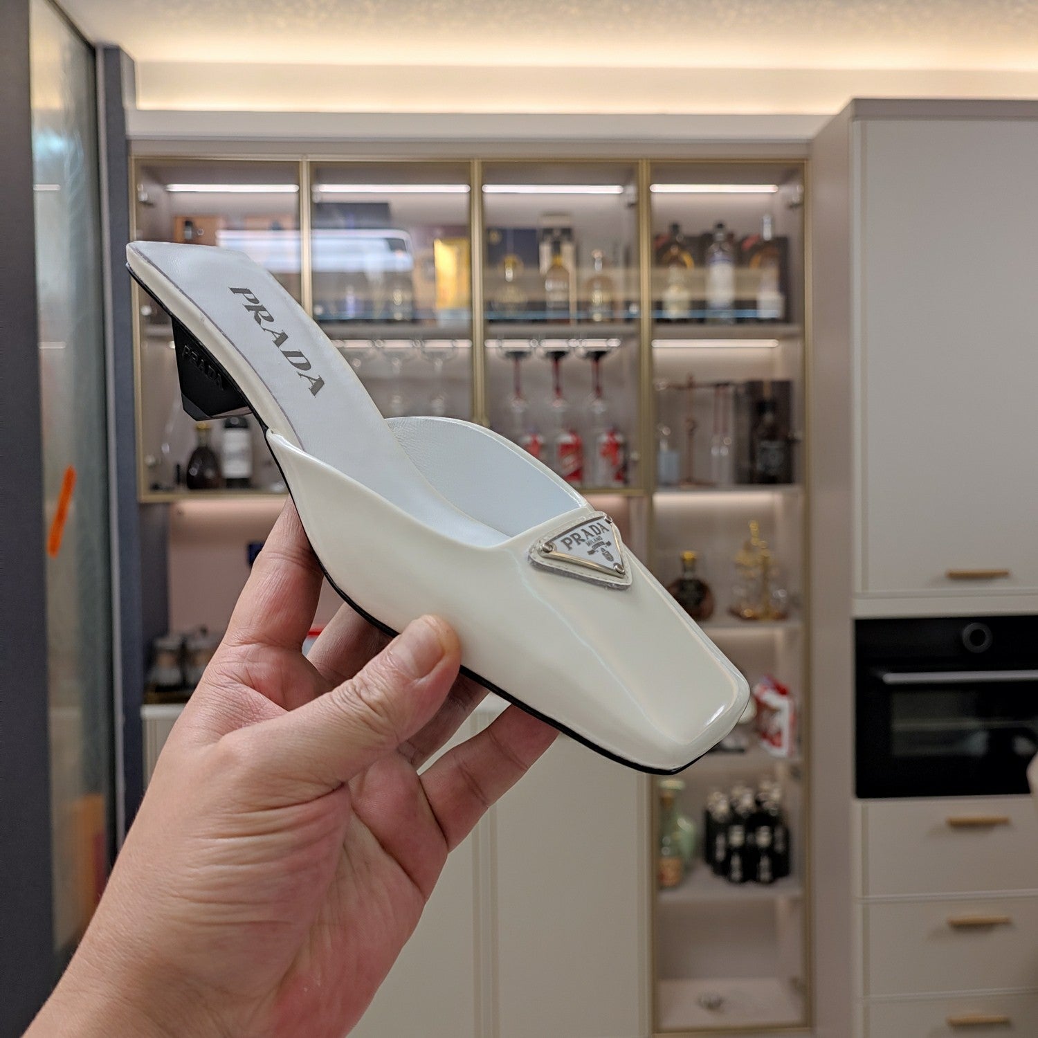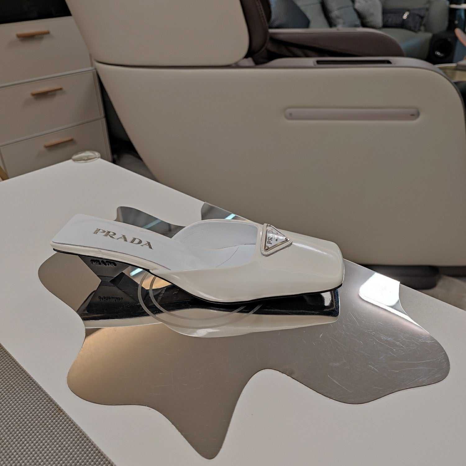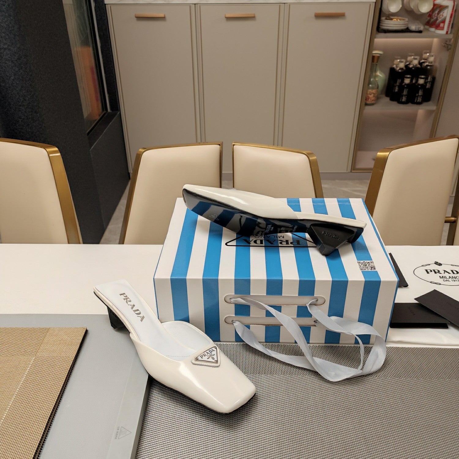 PRA SQUARE TOE MULES WHITE CALFSKIN WITH LOGO