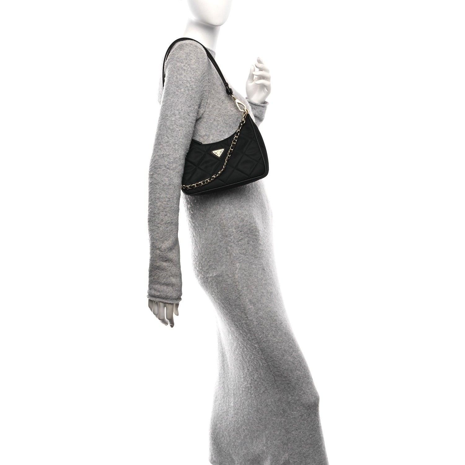 Re-Nylon Saffiano Quilted Mini Re-Edition 1995 Chaine Shoulder Bag Black
