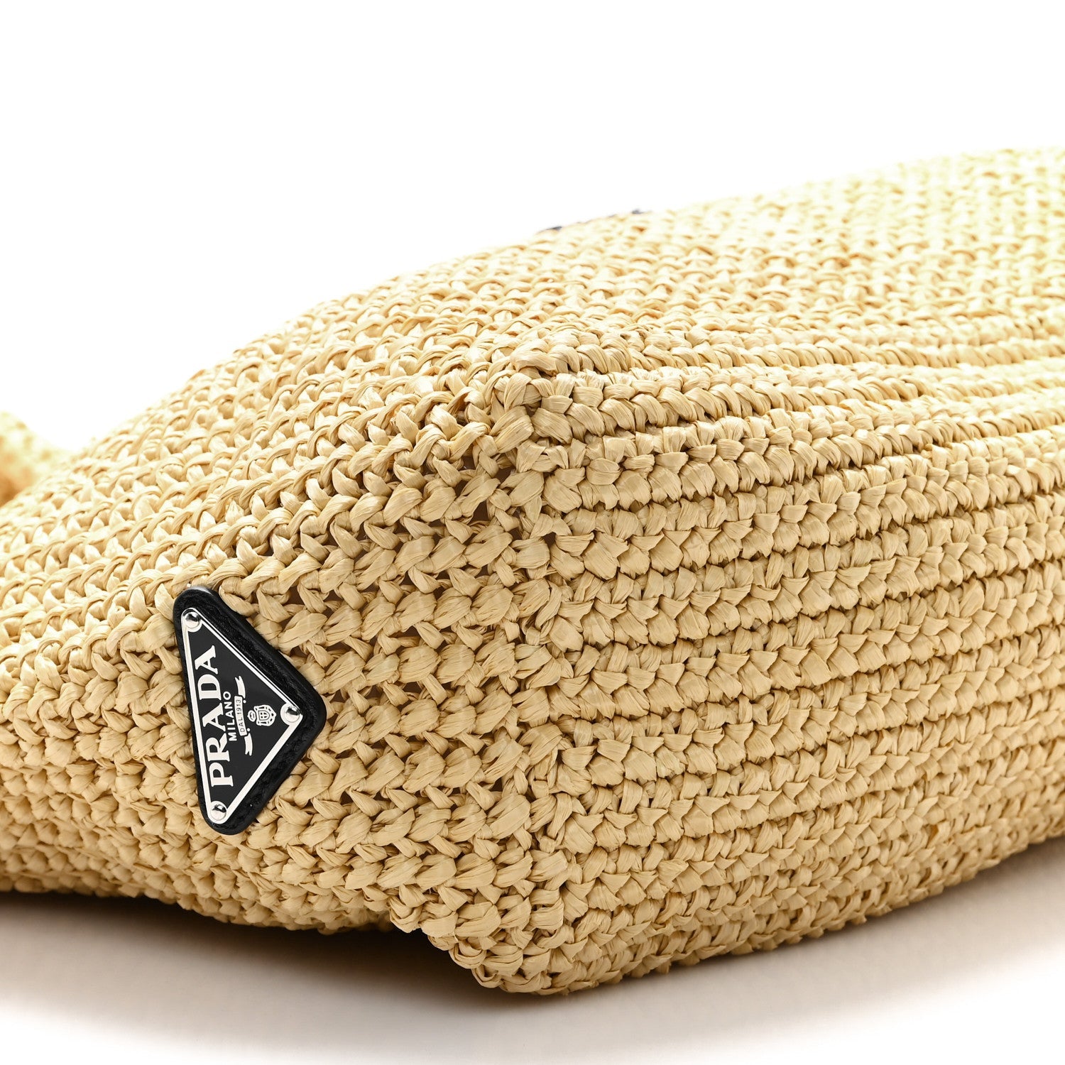 Yarn Raffia Effect Crochet Embroidered Logo Tote Naturale