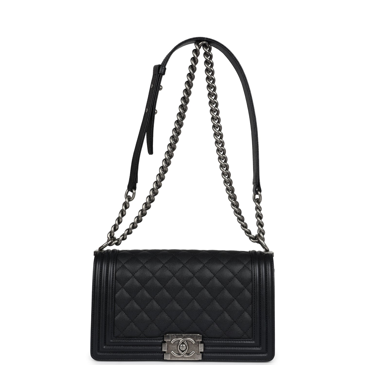 Pre-owned Chanel Medium Boy Bag Black Caviar Aged Ruthenium Hardware
