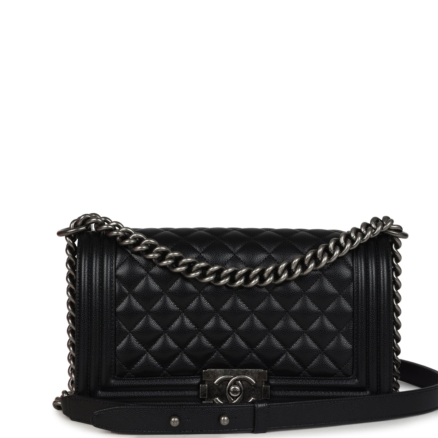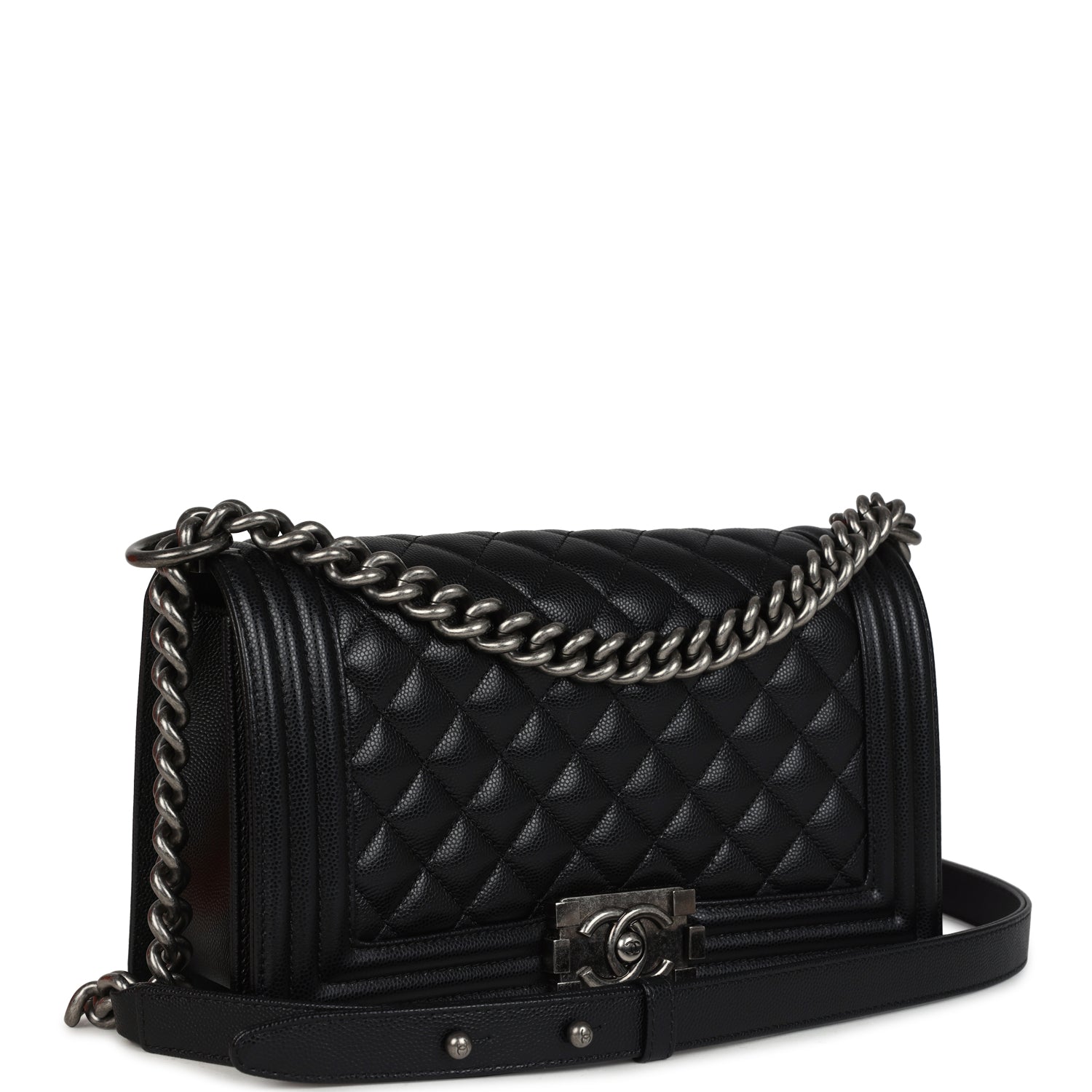 Pre-owned Chanel Medium Boy Bag Black Caviar Aged Ruthenium Hardware