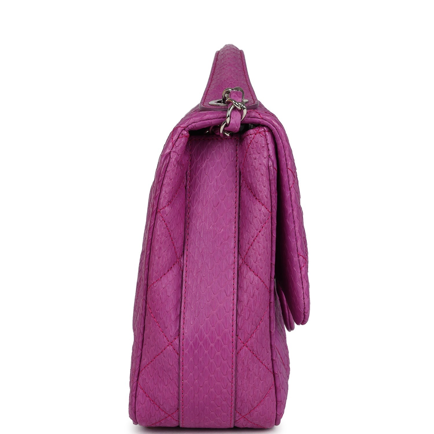Pre-owned Chanel Medium Easy Carry Flap Bag Purple Python Silver Hardware