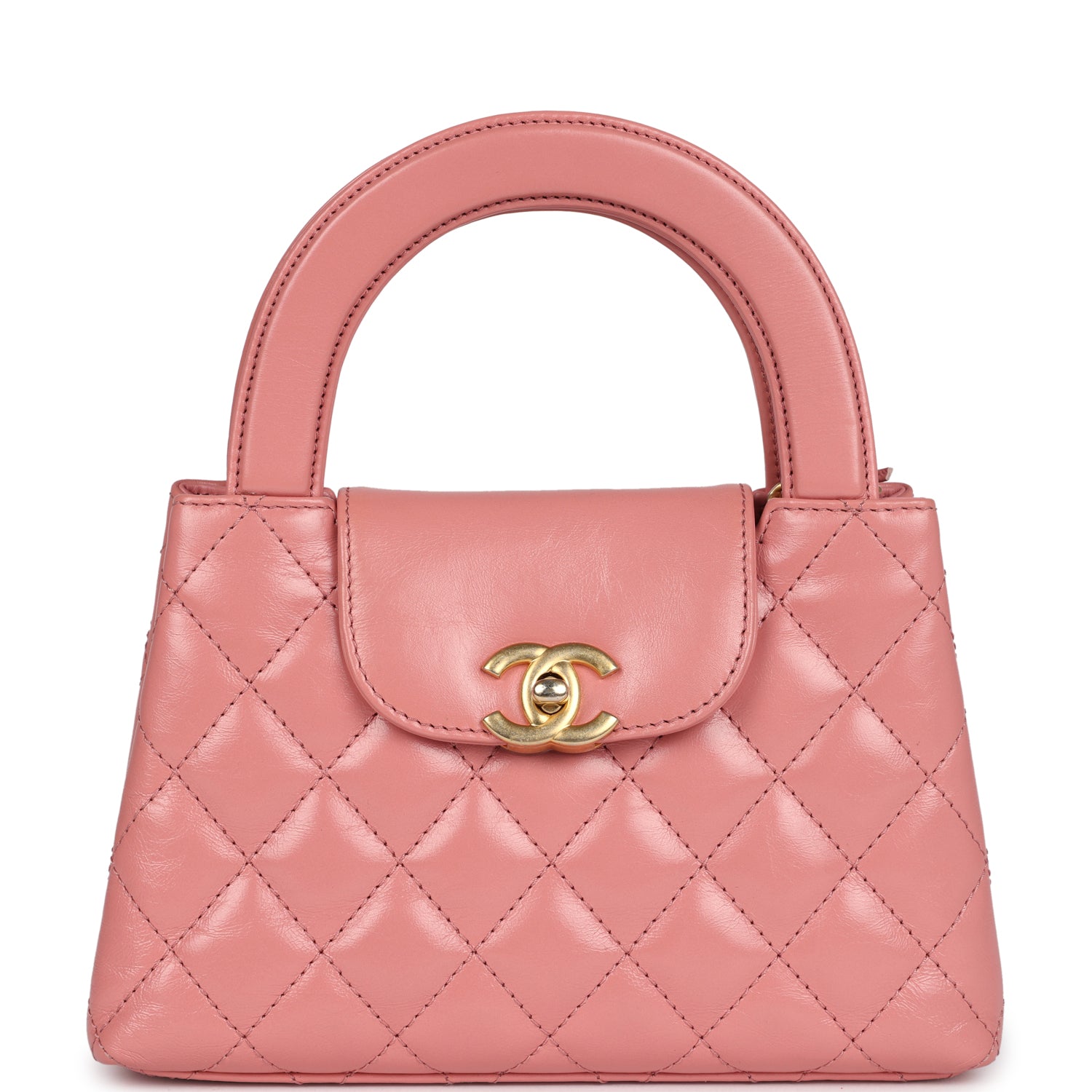 Pre-owned Chanel Small Kelly Shopper Pink Shiny Aged Calfskin Brushed Gold Hardware