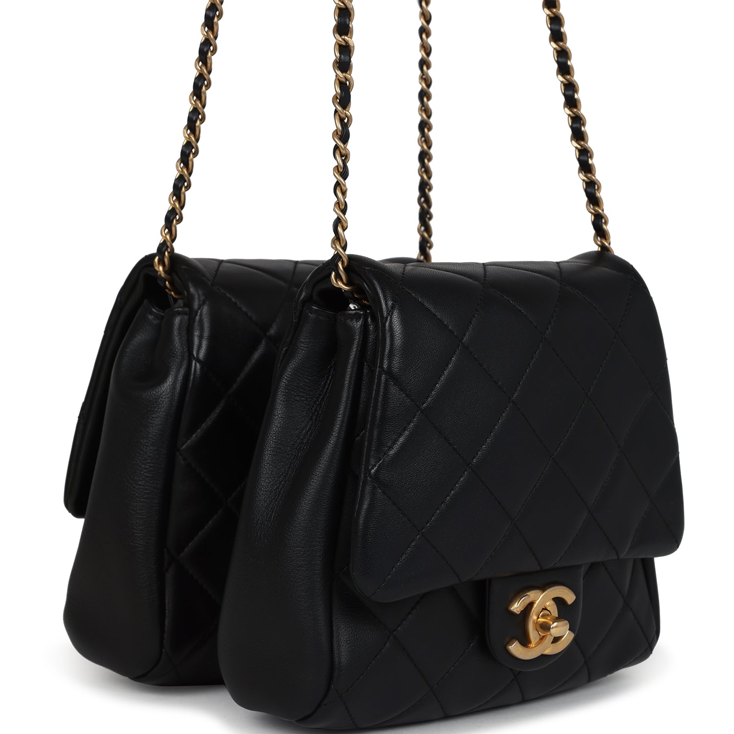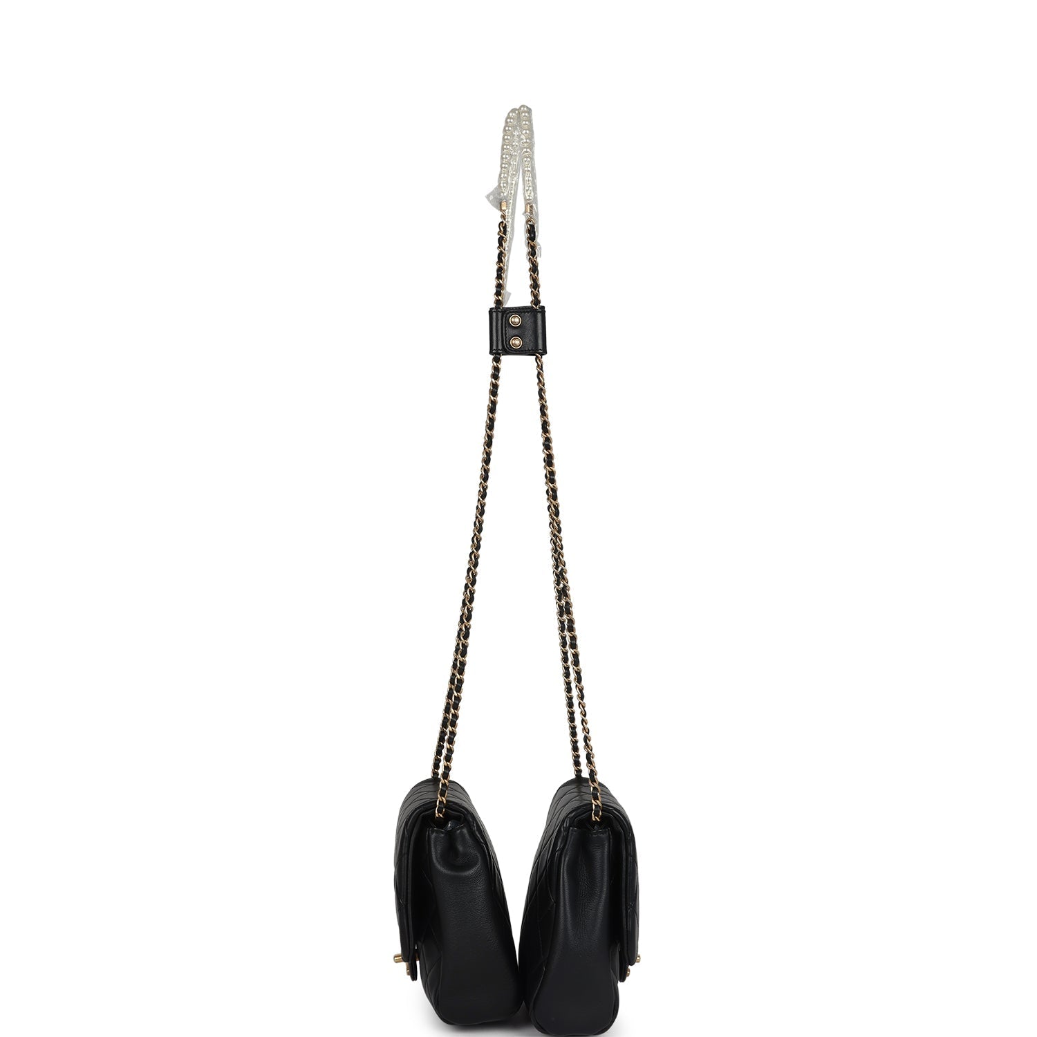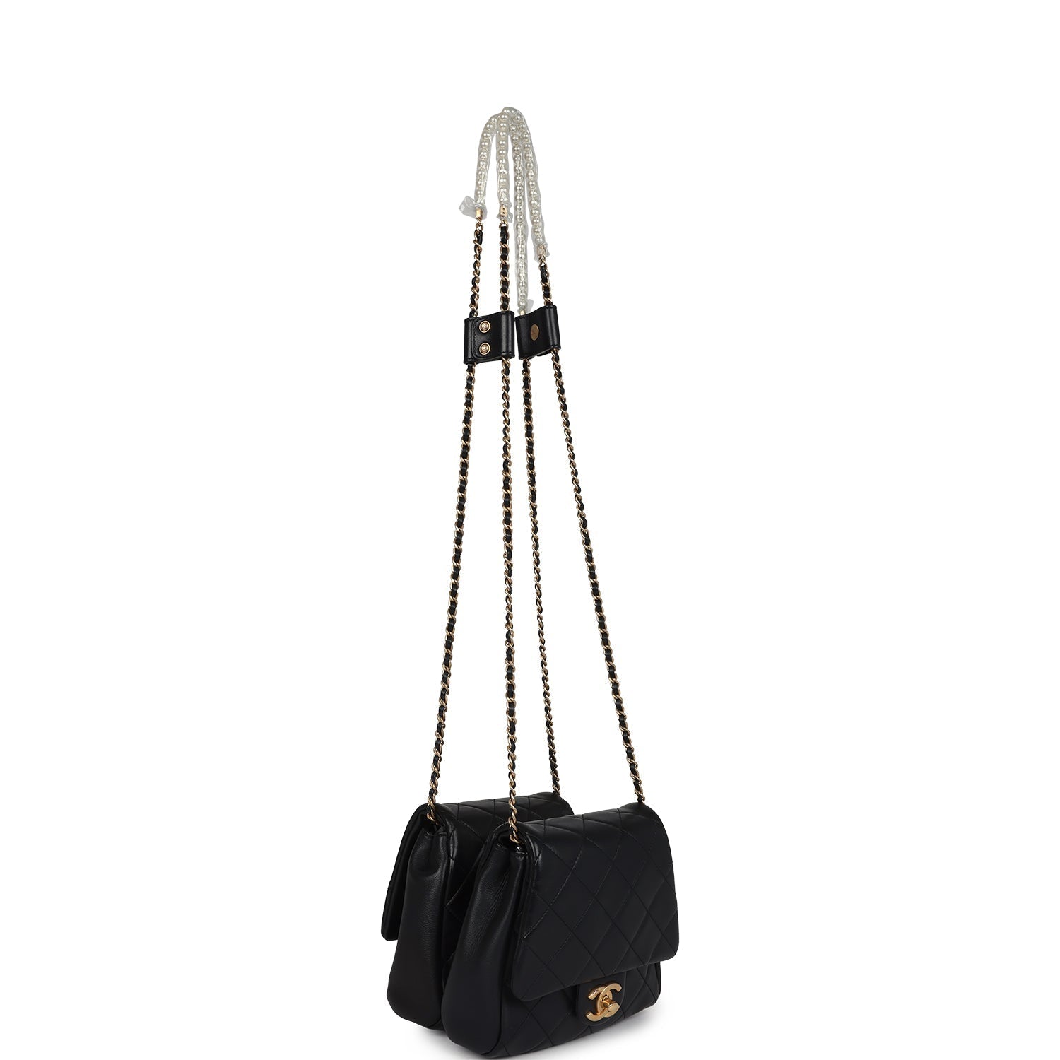 Pre-owned Chanel Twins Side Pack Black Lambskin Faux Pearls & Brushed Gold Hardware