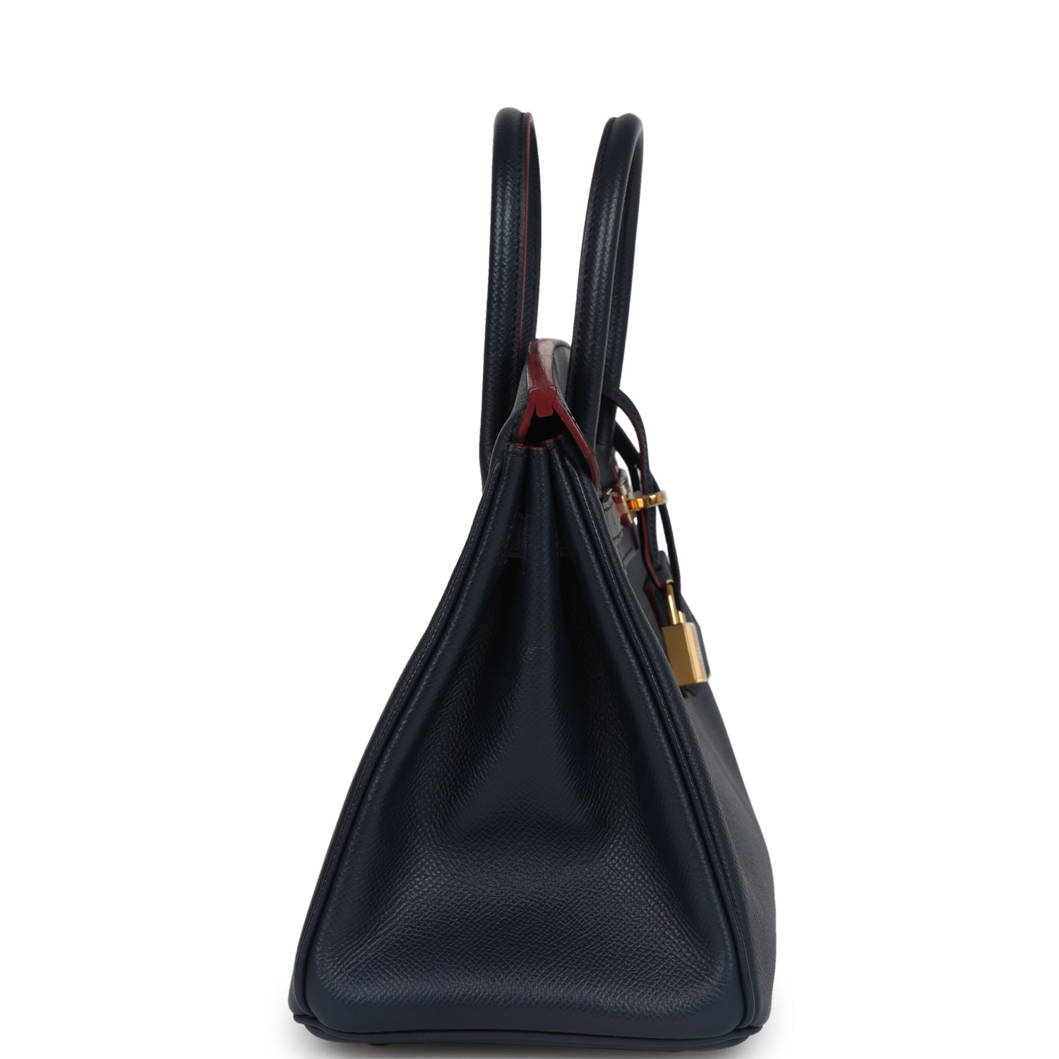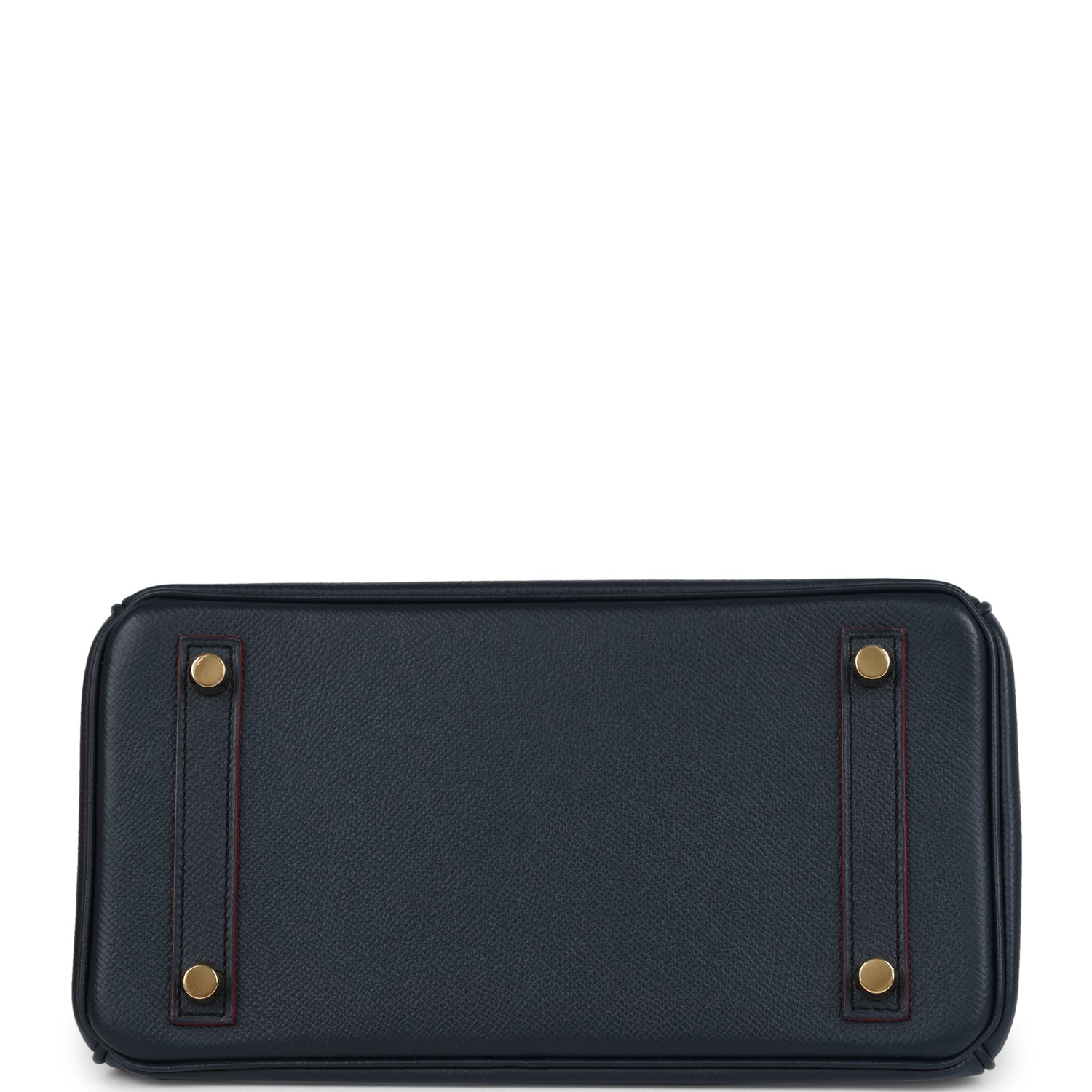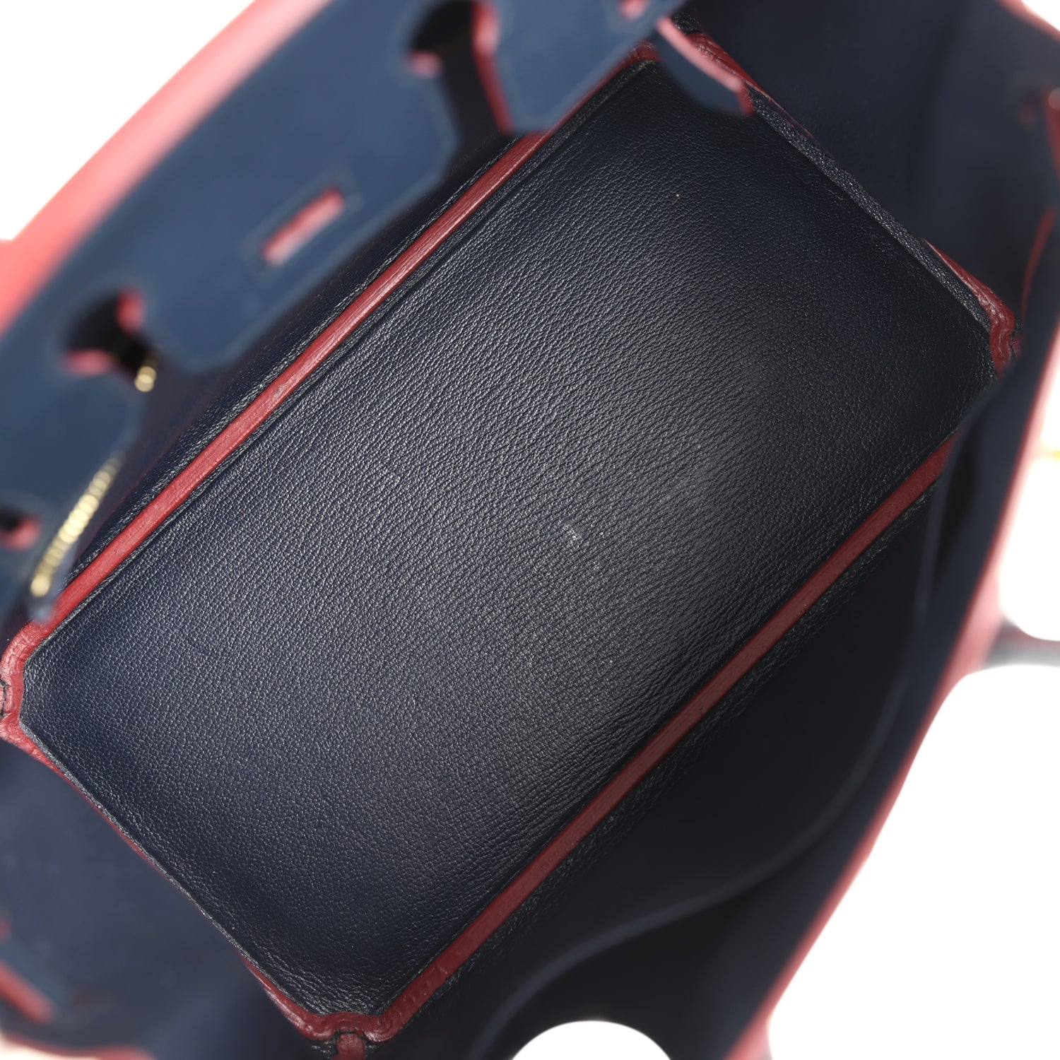 Pre-owned Hermes Birkin 25 Bleu Indigo and Rouge H Contour Epsom Gold Hardware