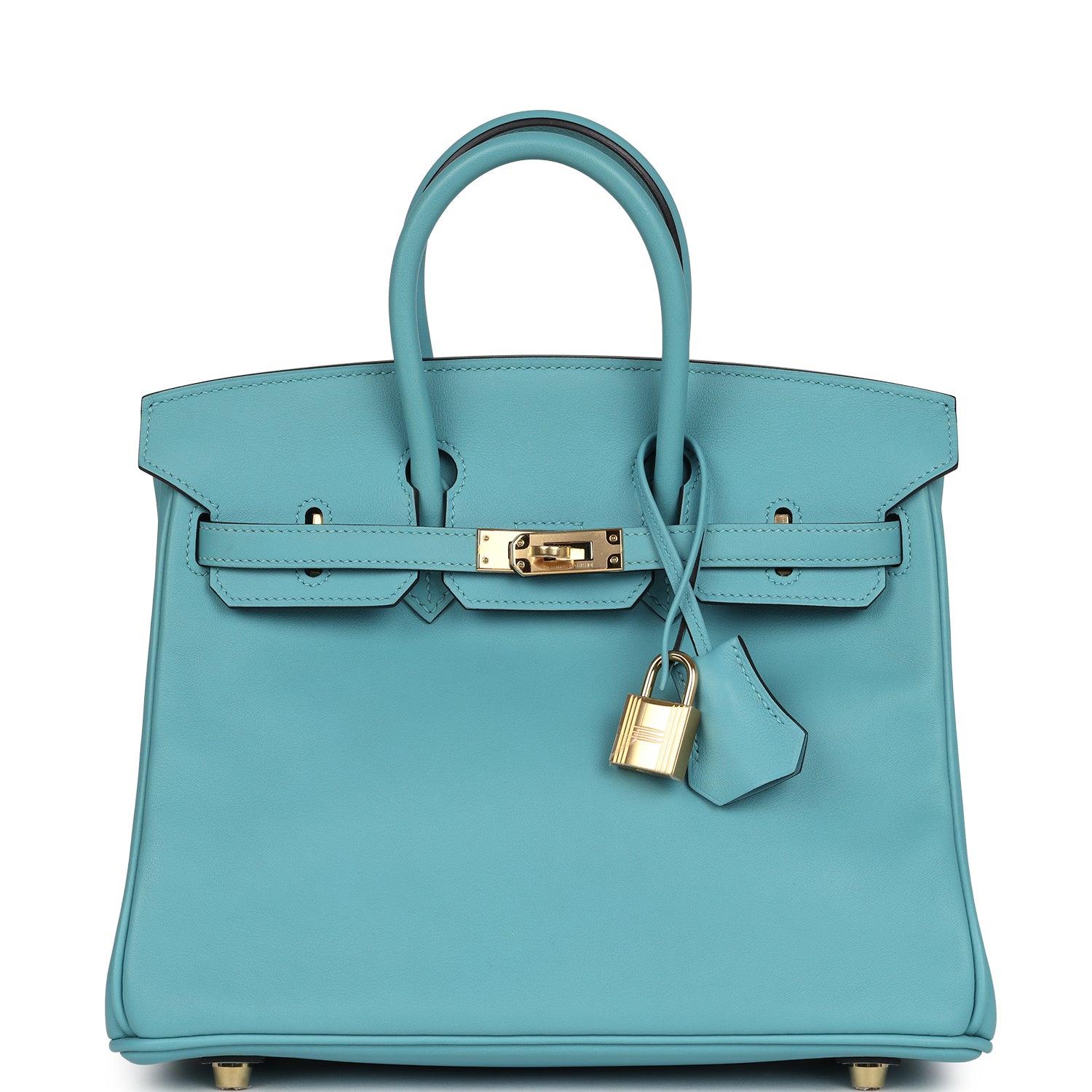 Pre-owned Hermes Birkin 25 Bleu Saint Cyr Swift Gold Hardware