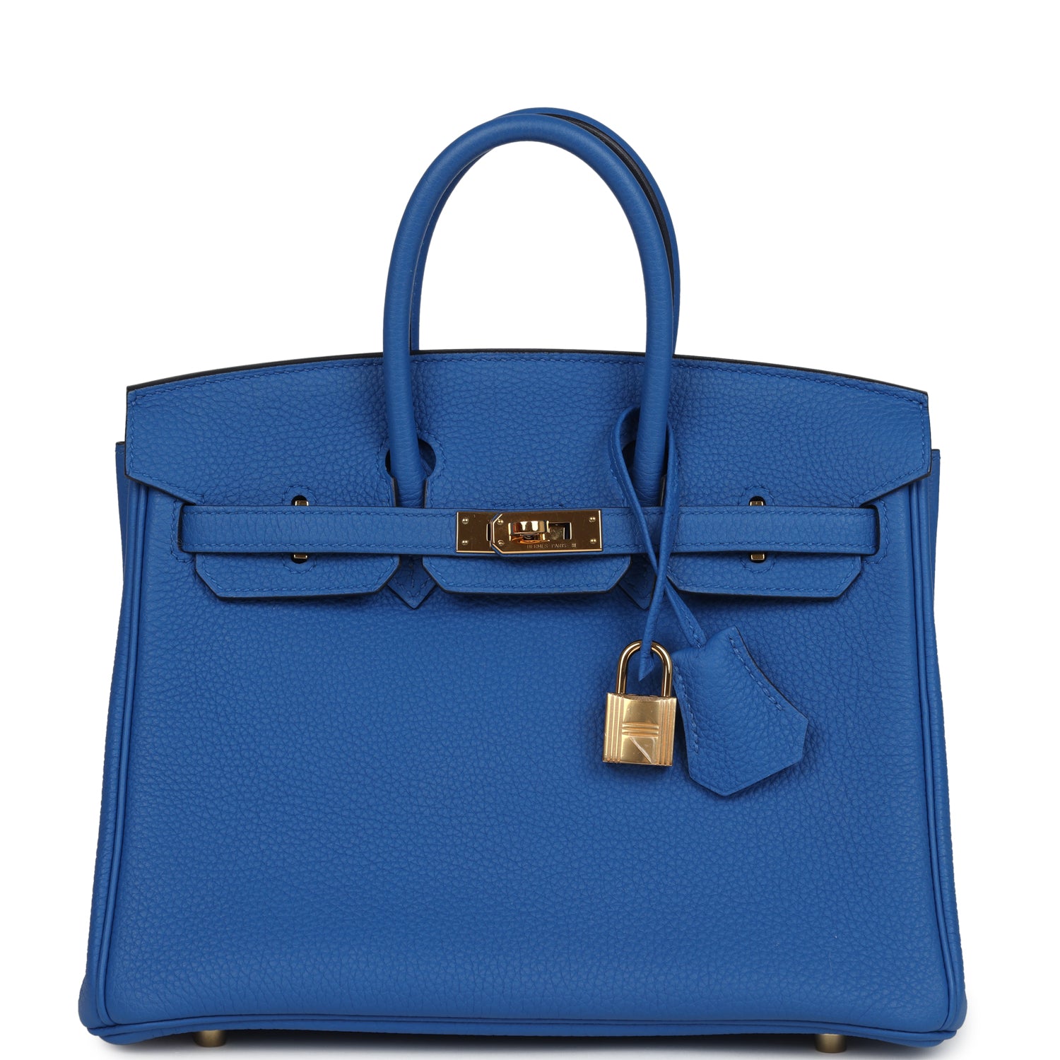 Pre-owned Hermes Birkin 25 Bleu Zellige Togo Gold Hardware