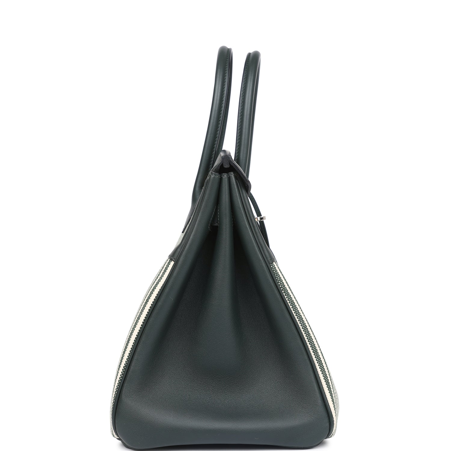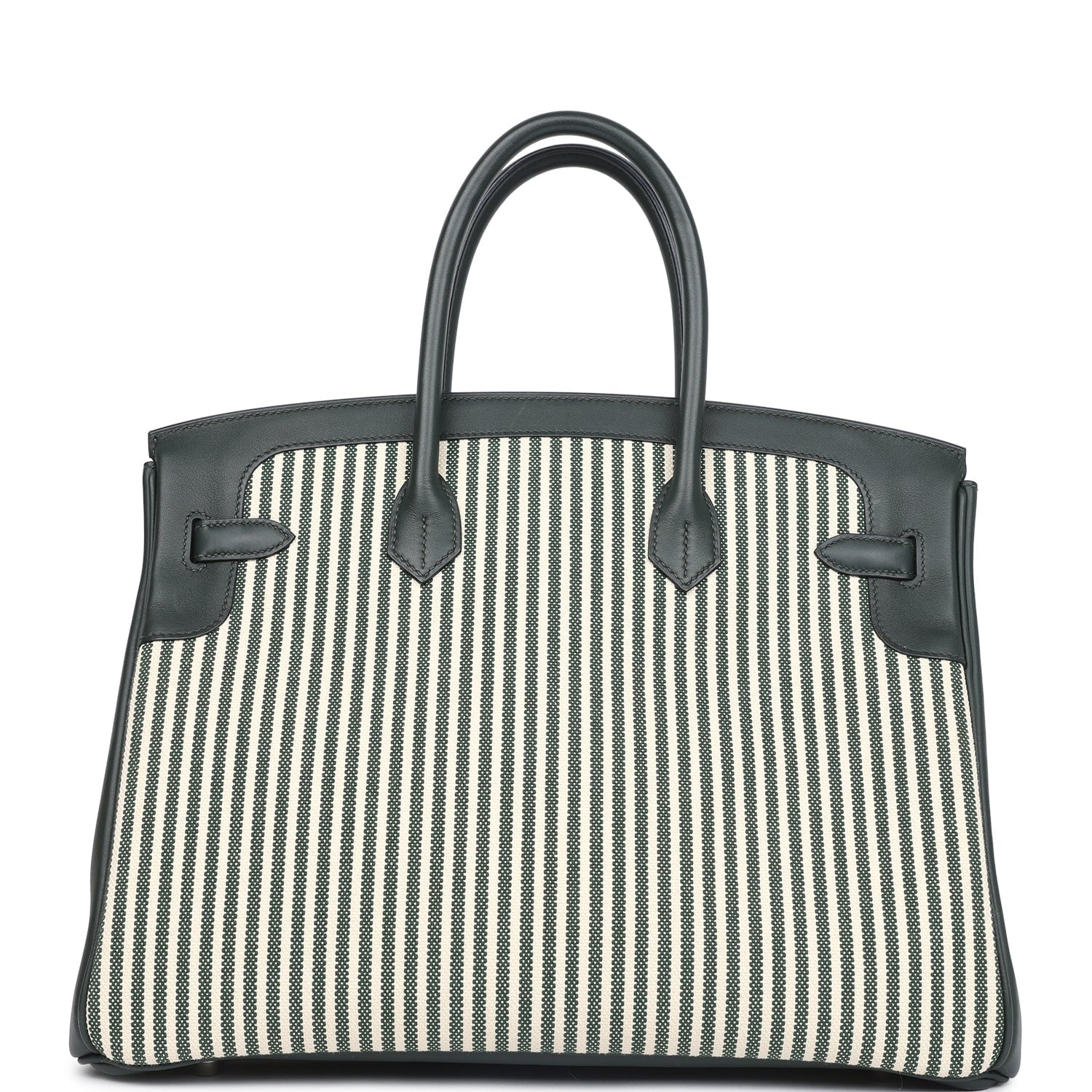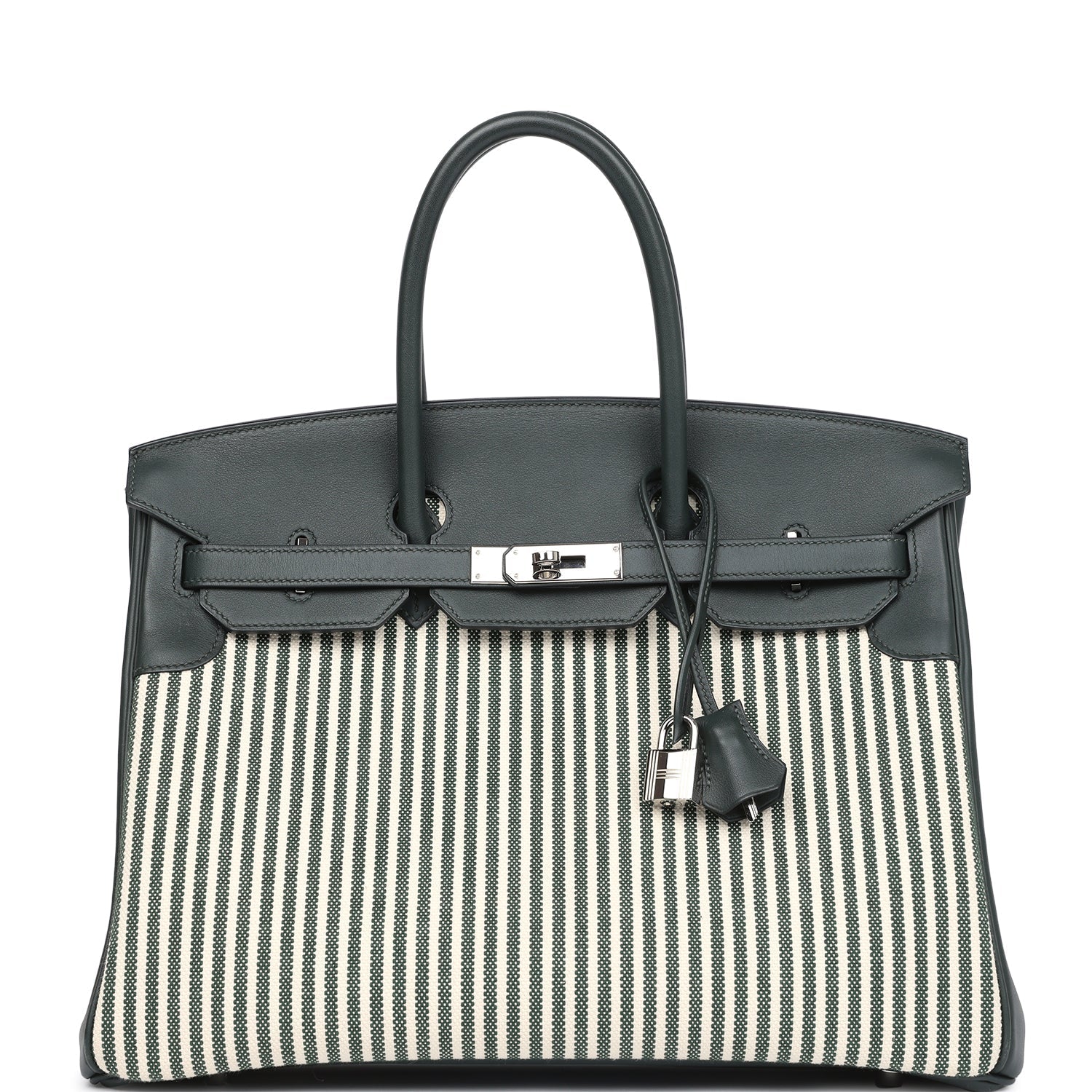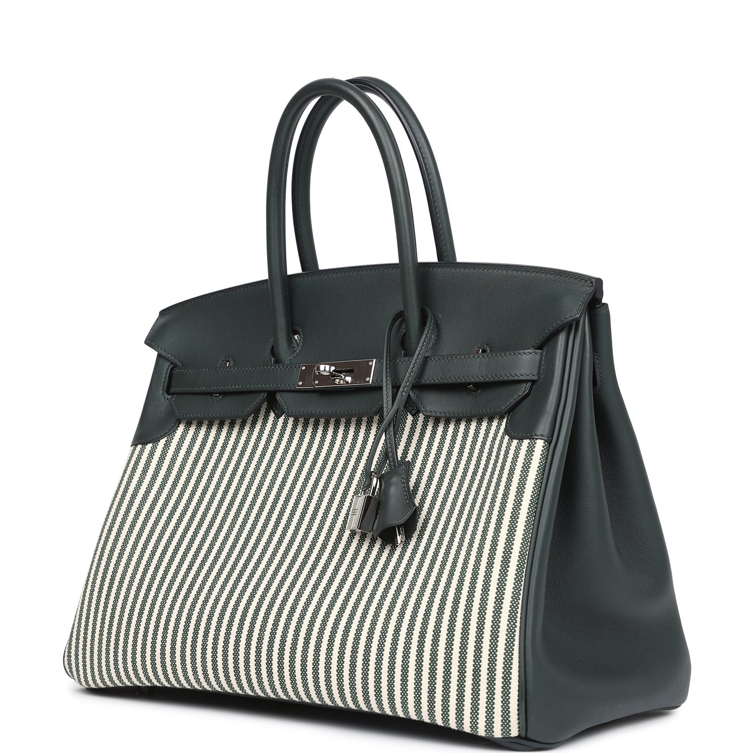 Pre-owned Hermes Birkin 35 Toile Riga and Vert Anglais Swift Palladium Hardware