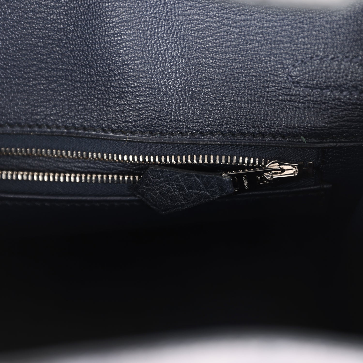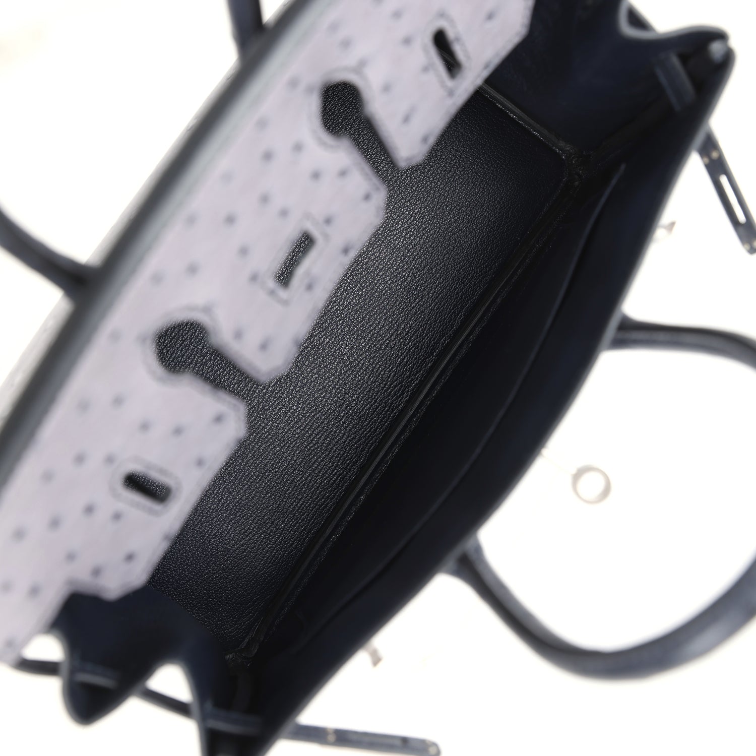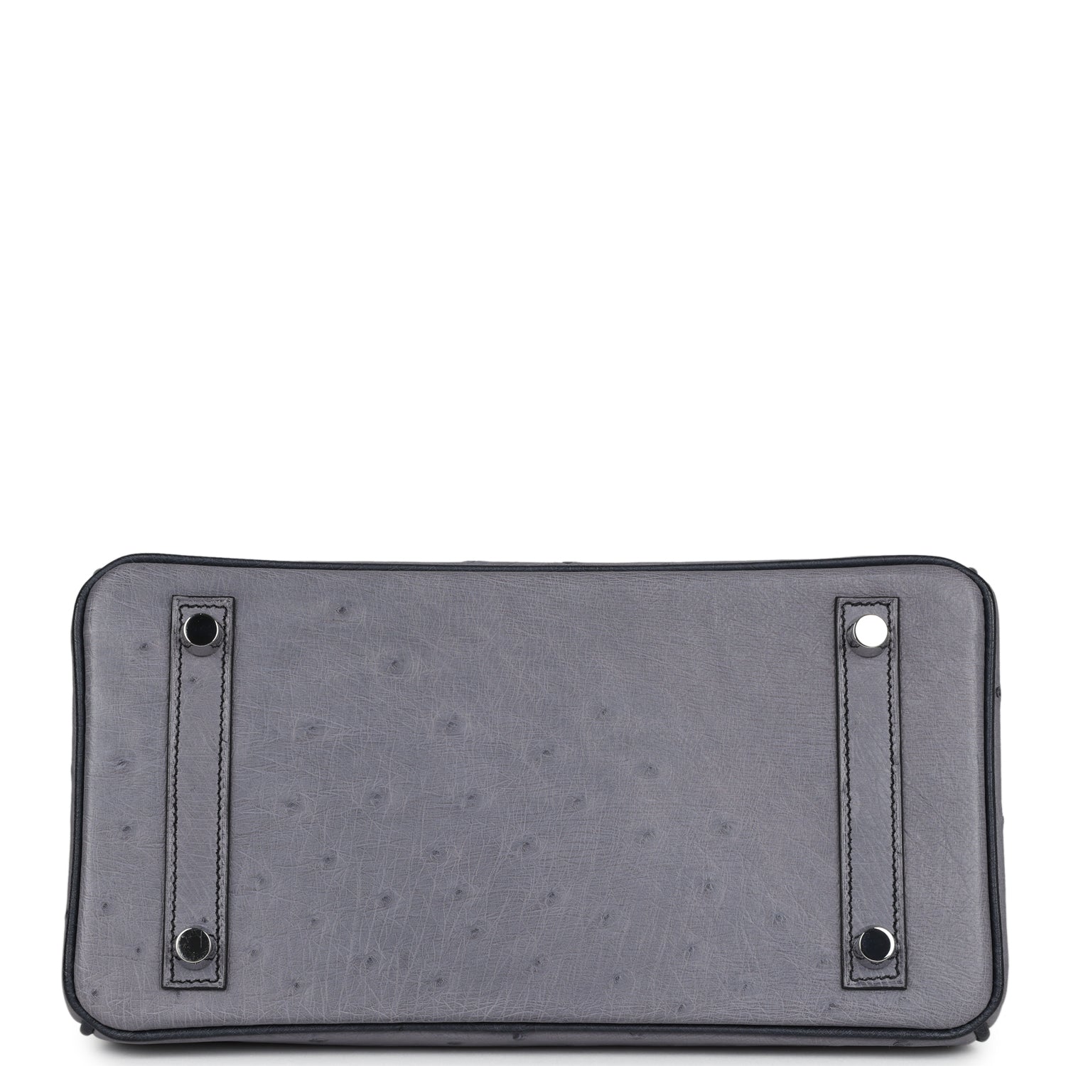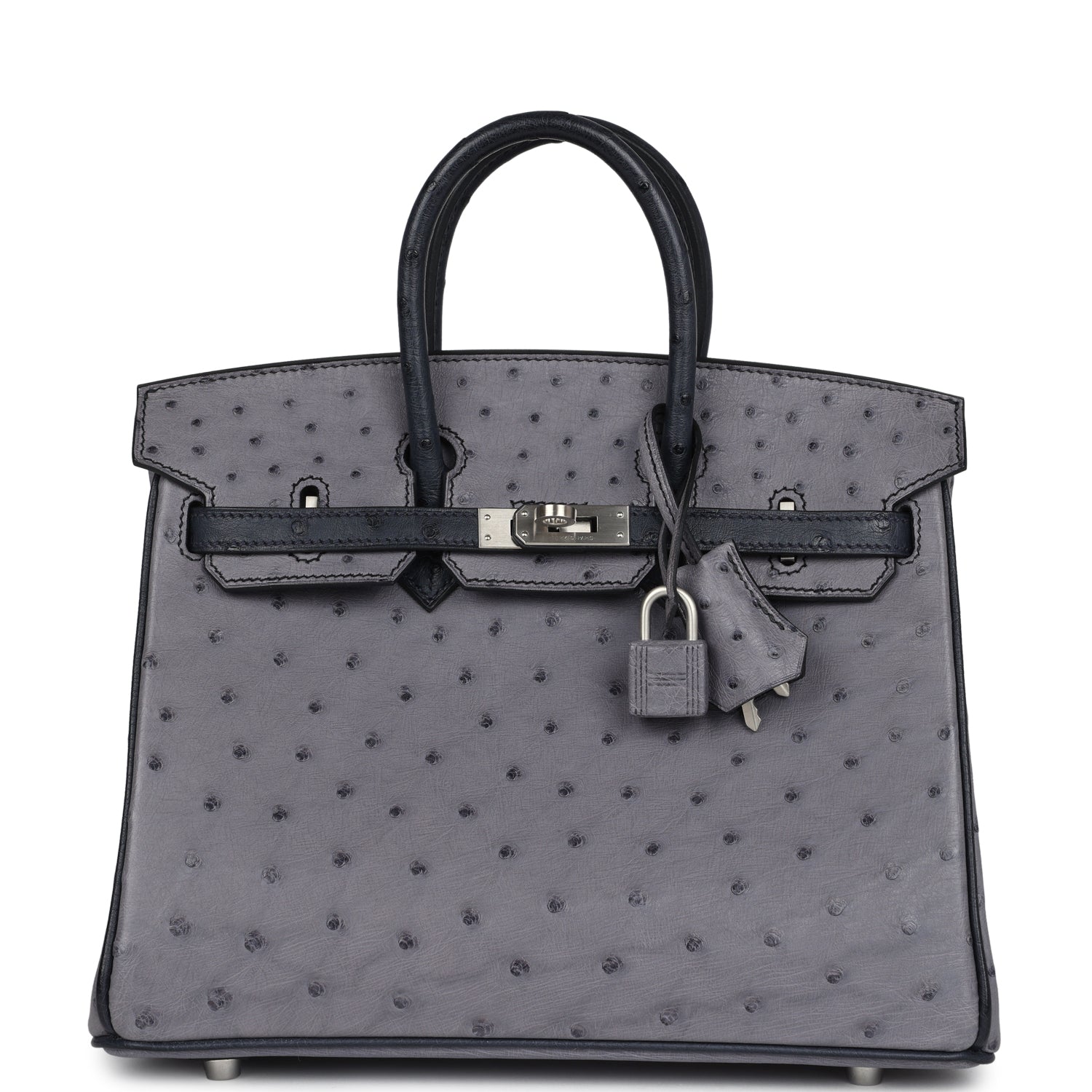 Pre-owned Hermes Special Order (HSS) Birkin 25 Gris Agate and Bleu Indigo Ostrich Brushed Palladium Hardware